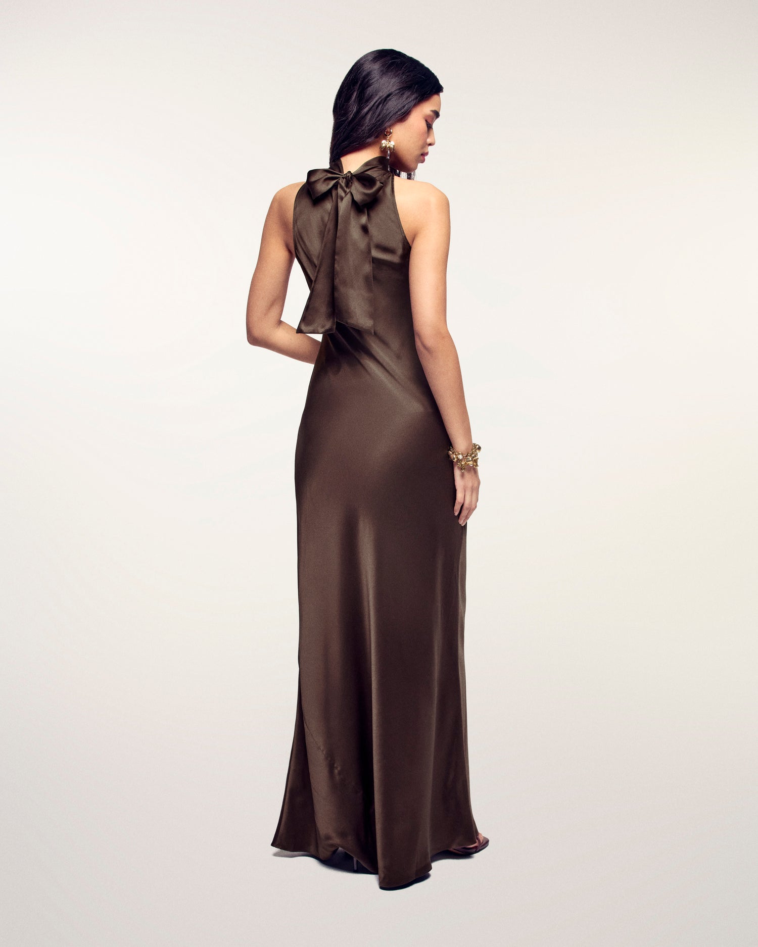 Scarf Neck Long Dress - Silk - Chocolate