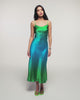 Blurred print and light, shiny silk satin for this slip-style maxi dress. Tailored and alluring, it features a rounded neckline, adjustable thin straps, and a fluid drape. Ideal for day or night, it can be worn alone or under a cozy knit.