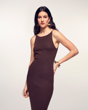 A piece of timeless elegance. Crafted from 100% Extrafine Merino Wool, this long dress features a very fitted slim cut. Its chic ribbed knit and gold double F jewel closure on the shoulder offer a premium and discreet allure.