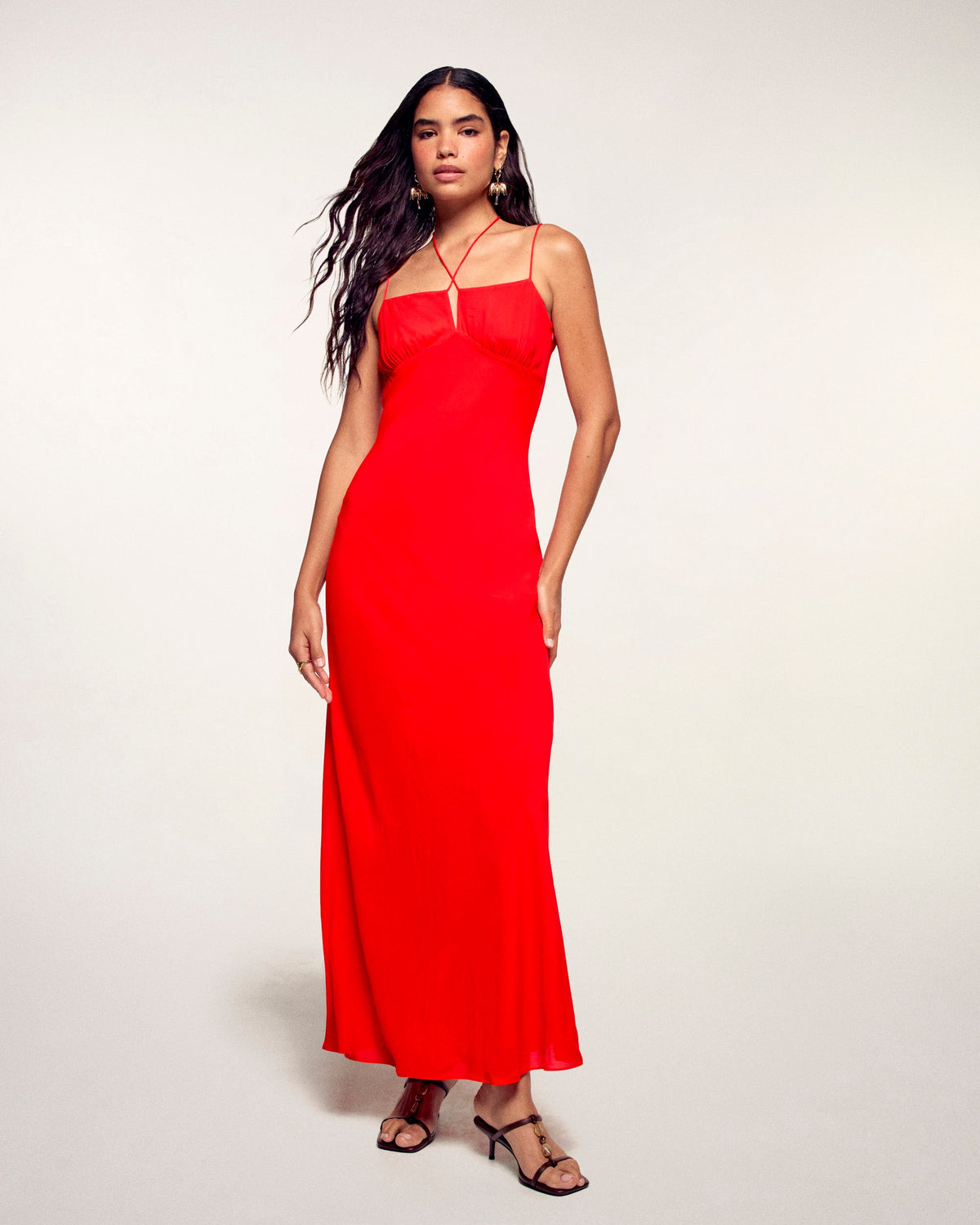 Jewel Tie Strappy Long Dress - Viscose - Sunset Coral