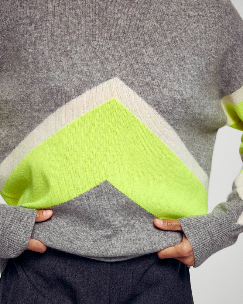 Sweater Color Block Mock Neck Sweater - 100% Cashmere - GCS Verified  - Dark Heather Gray
