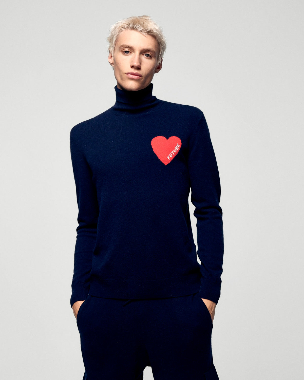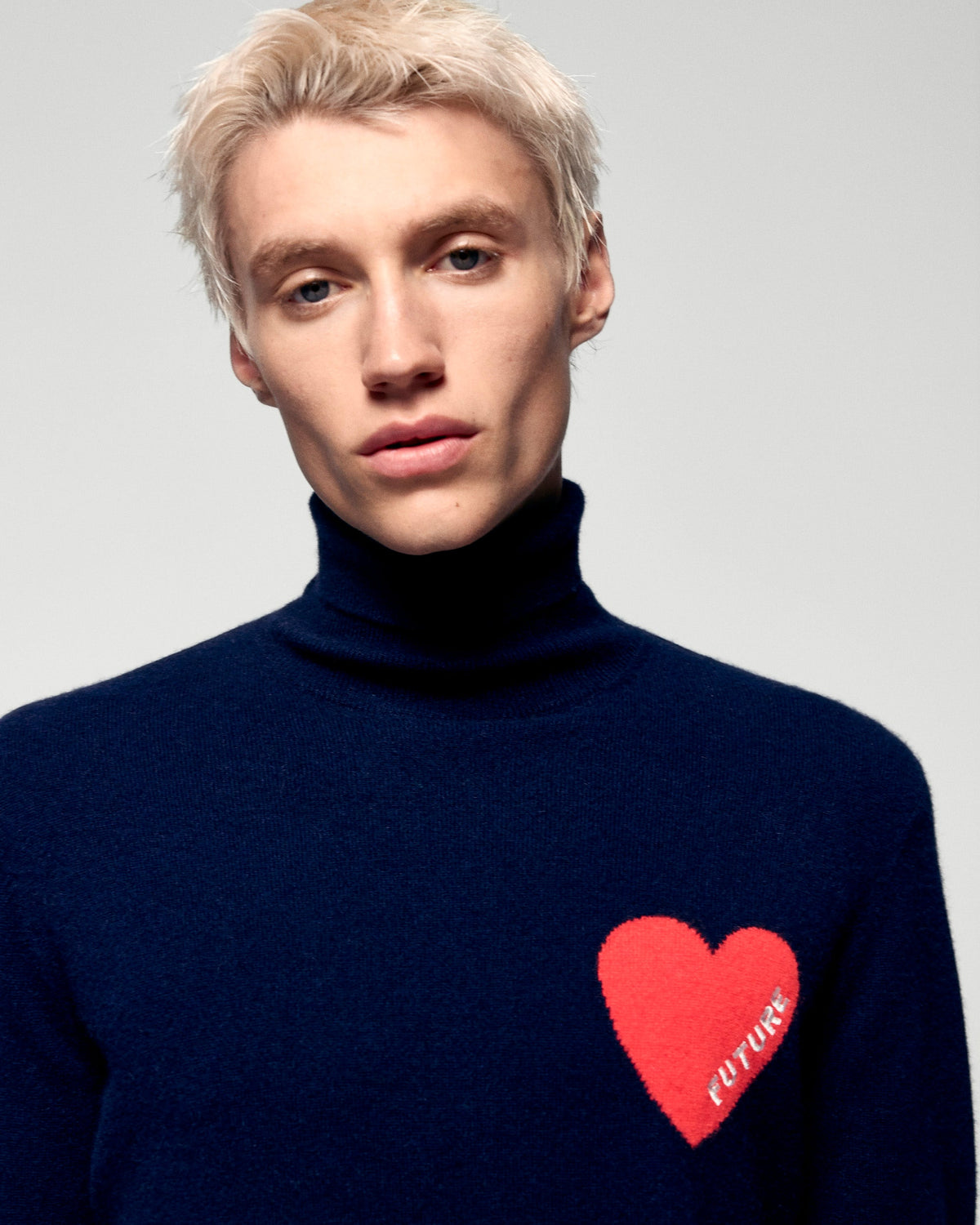 Join the Club with this soft cashmere sweater. Featuring a turtleneck, long sleeves, and ribbed edges, it reveals an embroidered "FUTURE" heart on the chest. A must-have piece from the FROM FUTURE wardrobe, pair it with wide-leg trousers, sneakers, and a signature cap.