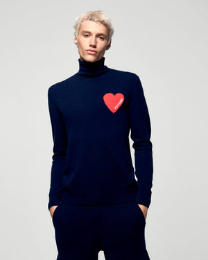 Turtleneck Sweater with Heart Detail - 100% Cashmere - GCS Verified  - Navy