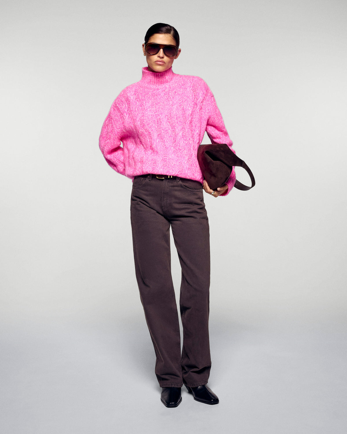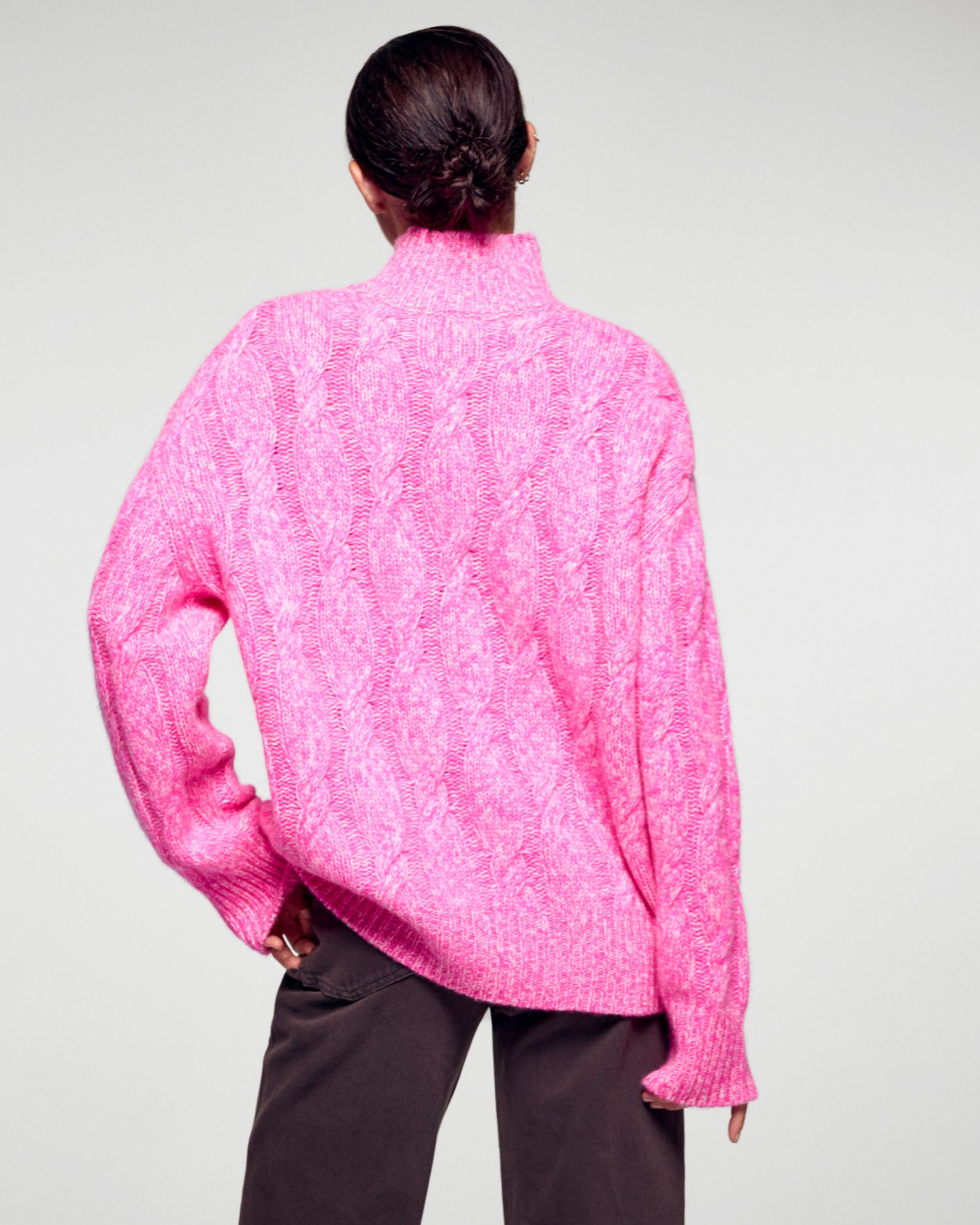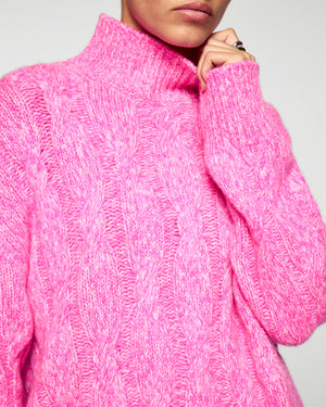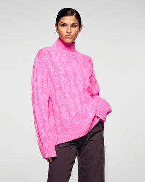 Oversized Cable-knit Mock Neck Sweater - 100% Cashmere - GCS Verified  - Secret Pink