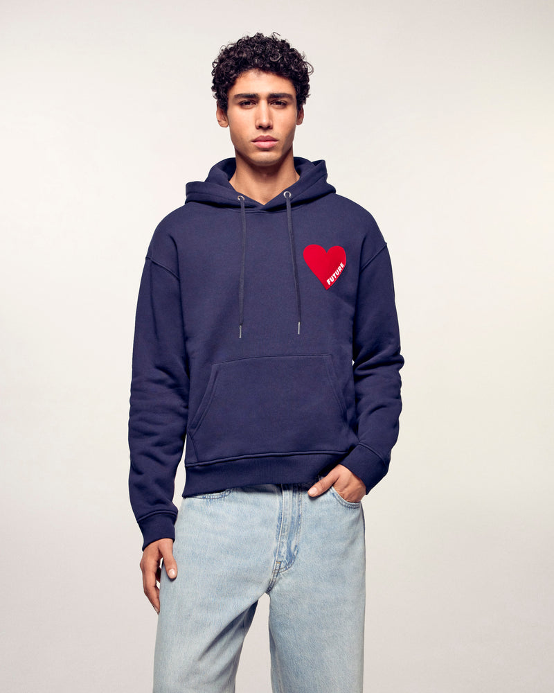 Join the Club with our cotton hoodie sweatshirt. Featuring a drawstring hood, a front pocket and long sleeves, it reveals a flocked "FUTURE" heart on the chest. A must-have piece in the men's wardrobe.