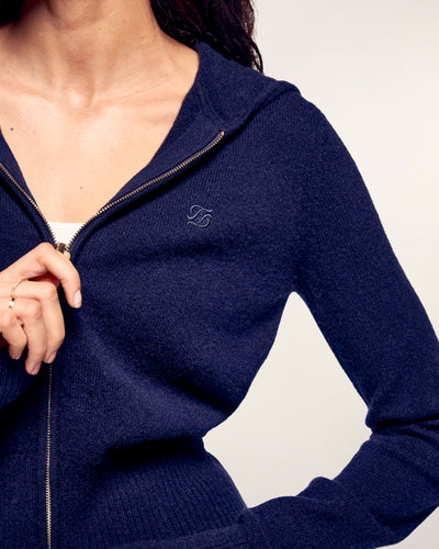 Hoodie Sweater - 100% Cashmere - GCS Verified - Navy