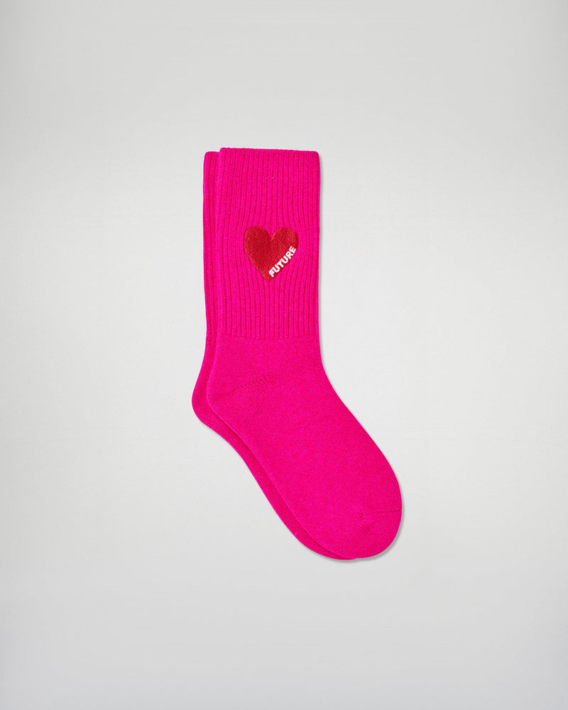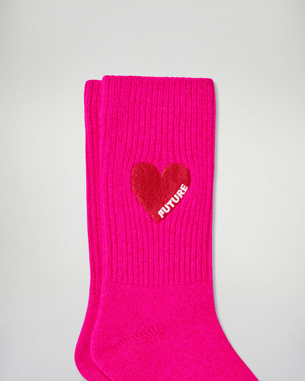 Elevate your seasonal look with these mid-high socks crafted from cashmere. Ribbed and tightened at the ankles, they reveal an embroidered "Future" heart, inviting you to join the Club!