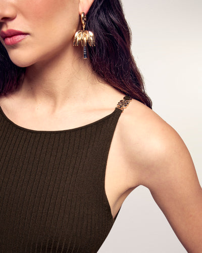 Long Ribbed Dress with Jewel Shoulders - 100% Merino Wool - RWS Certified - Chocolate