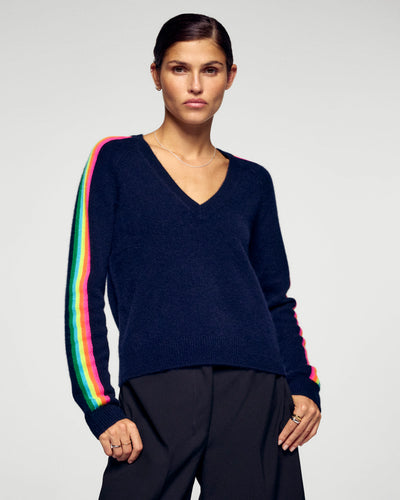 Multicolored V-Neck Sweater - 100% Cashmere - GCS Verified  - Navy