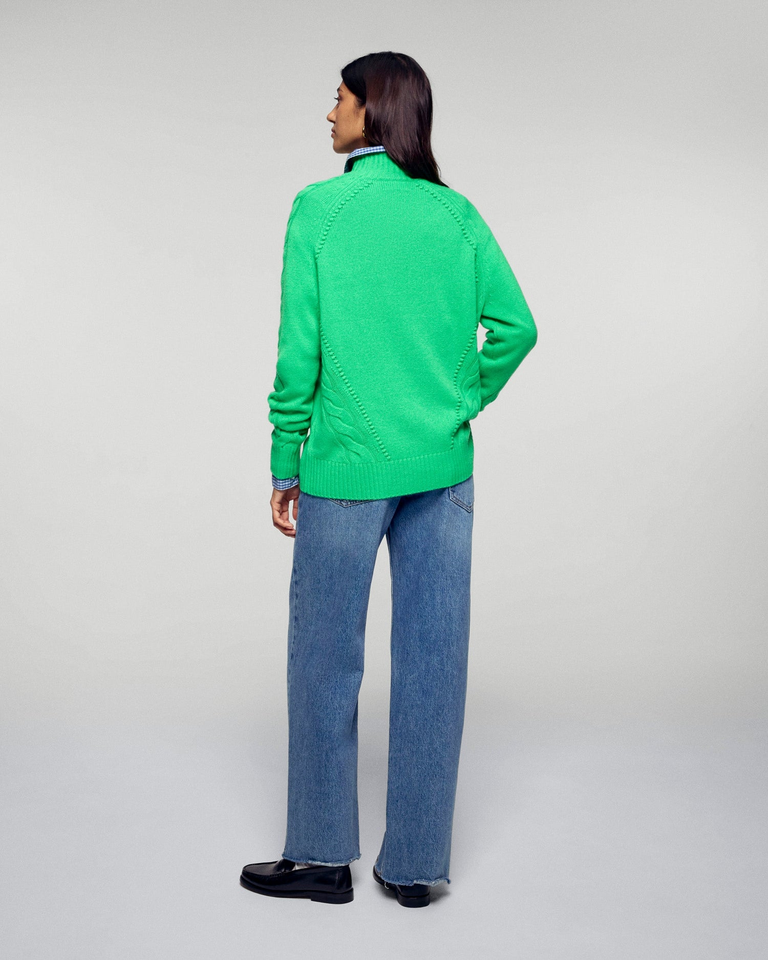 Mock Neck Sweater - 100% Cashmere - GCS Verified  - Cosmic Green