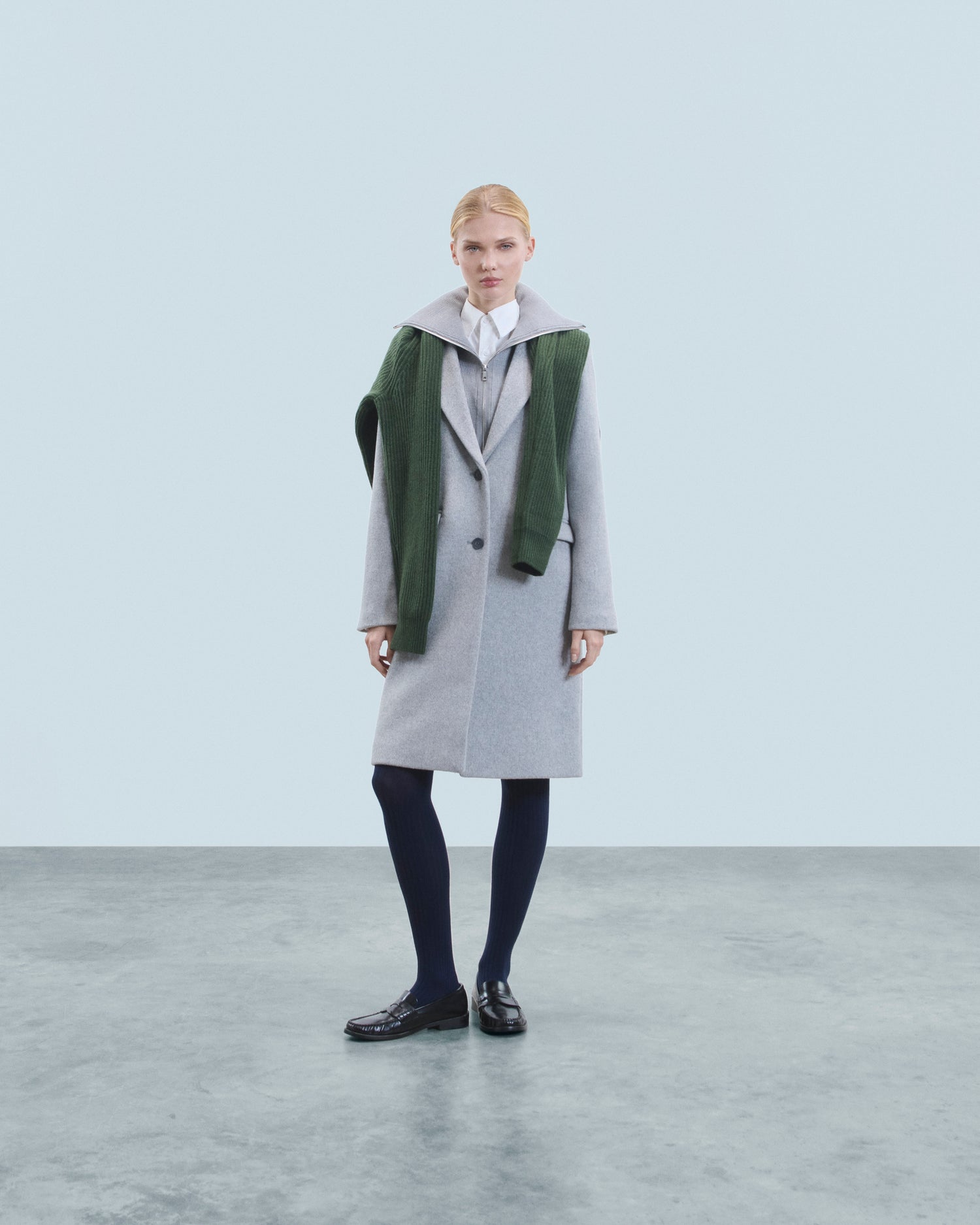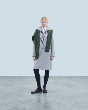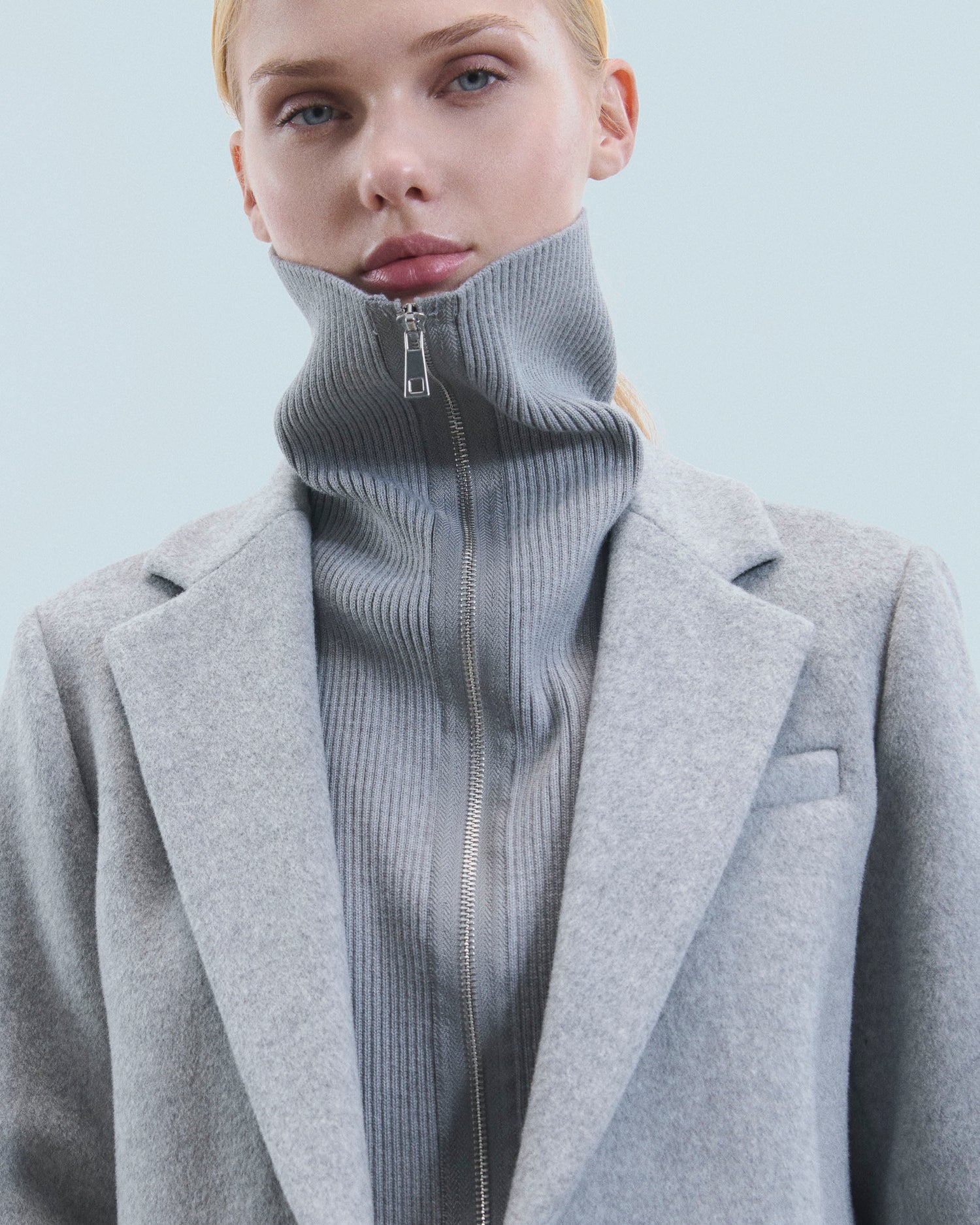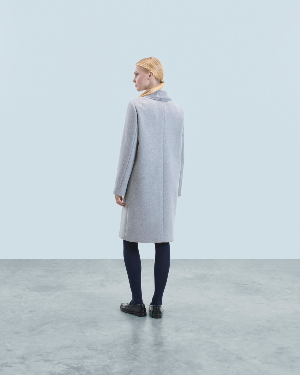This long coat, crafted from RWS (Responsible Wool Standard) certified wool, is the must-have centerpiece of the season. Featuring a tailored collar and two side pockets.