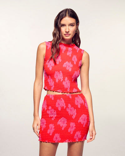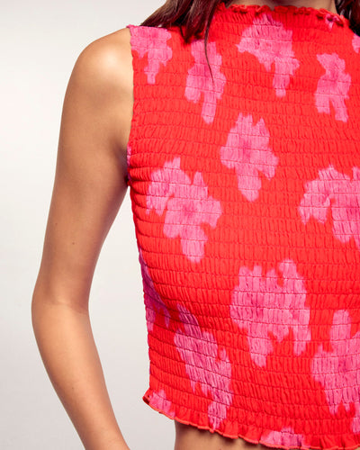 "All Over" Smocked Sleeveless Top - Viscose - Ruby Hibiscus