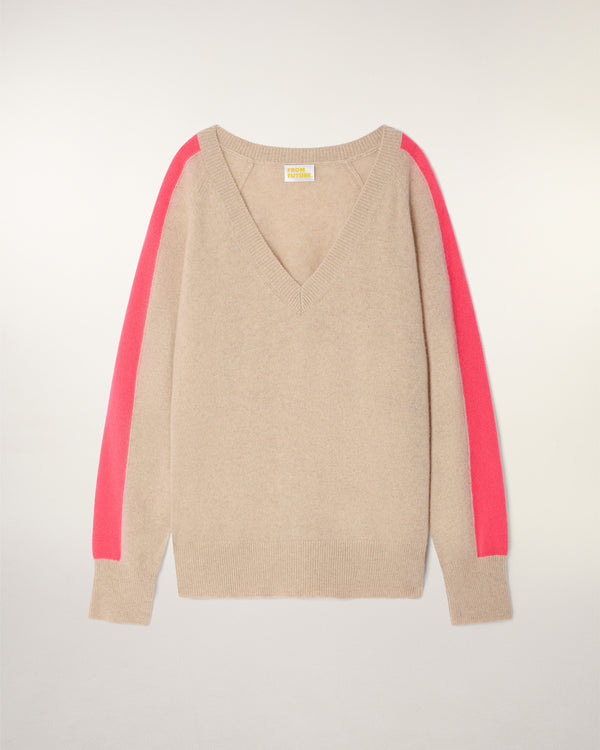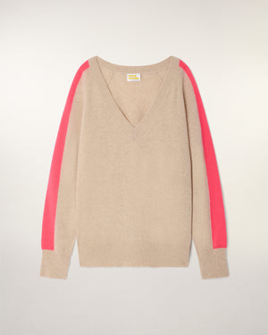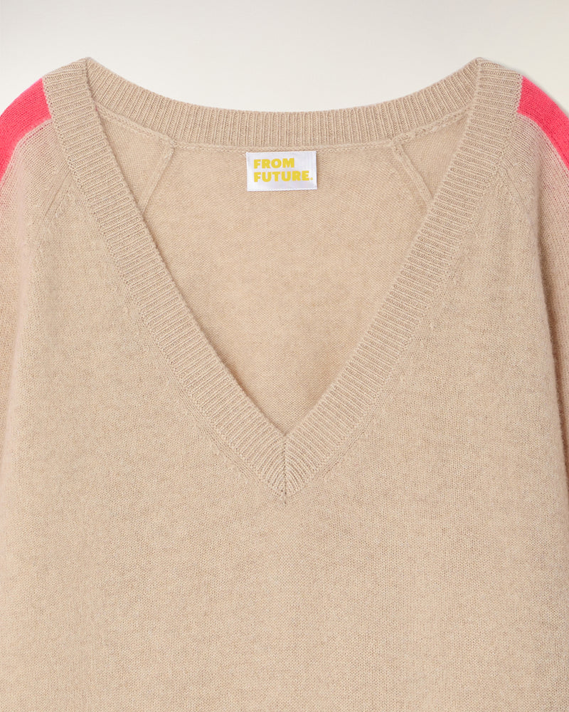 V-Neck Sweater - 100% Cashmere - GCS Verified - Heather Beige