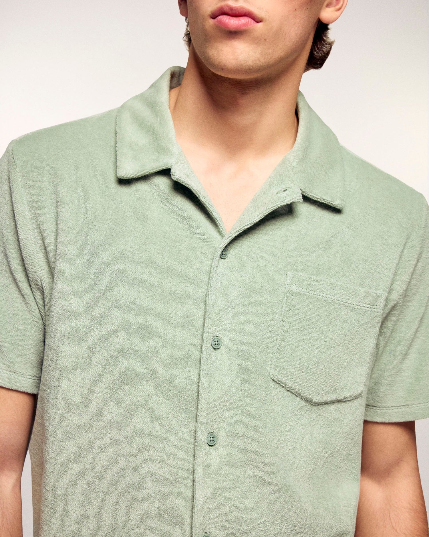 Short Sleeved Terry Cloth Shirt - Cotton - Sage Green
