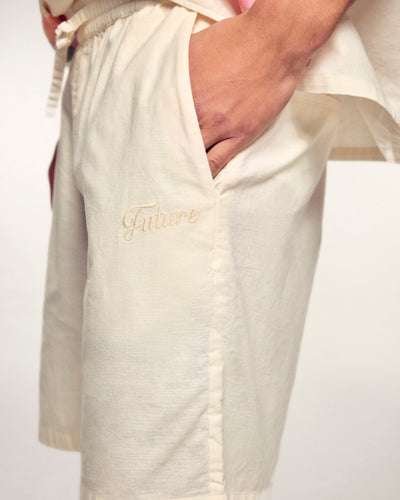 "Future" Embroidered Shorts - Cotton - Ecru