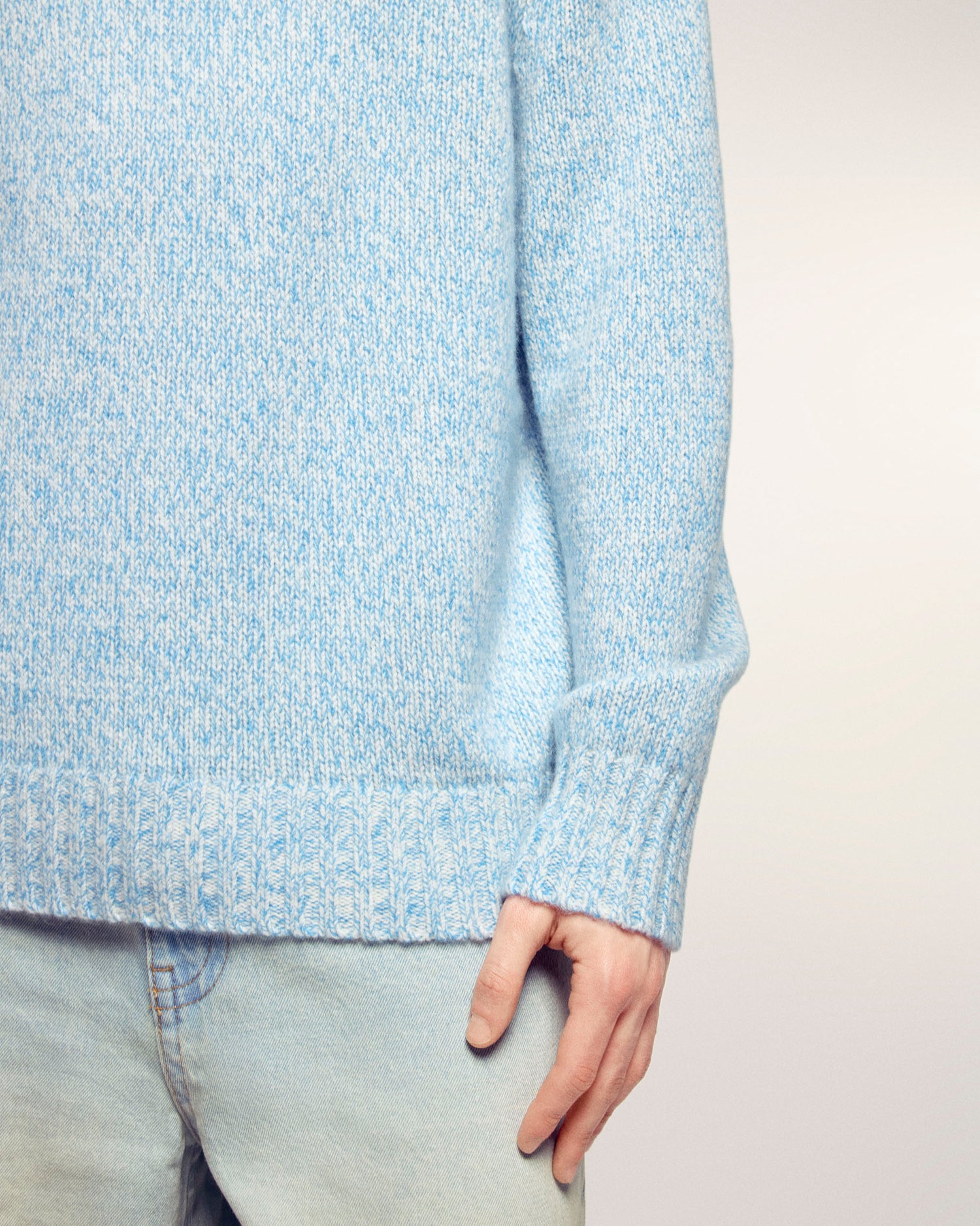 The essential sweater that combines thickness and comfort. Crafted from 8-ply Cashmere, it offers a dense and warm knit, perfect for winter. Its two-tone mélange yarn creates a beautiful heathered effect, while its oversize fit ensures a relaxed and modern drape.
