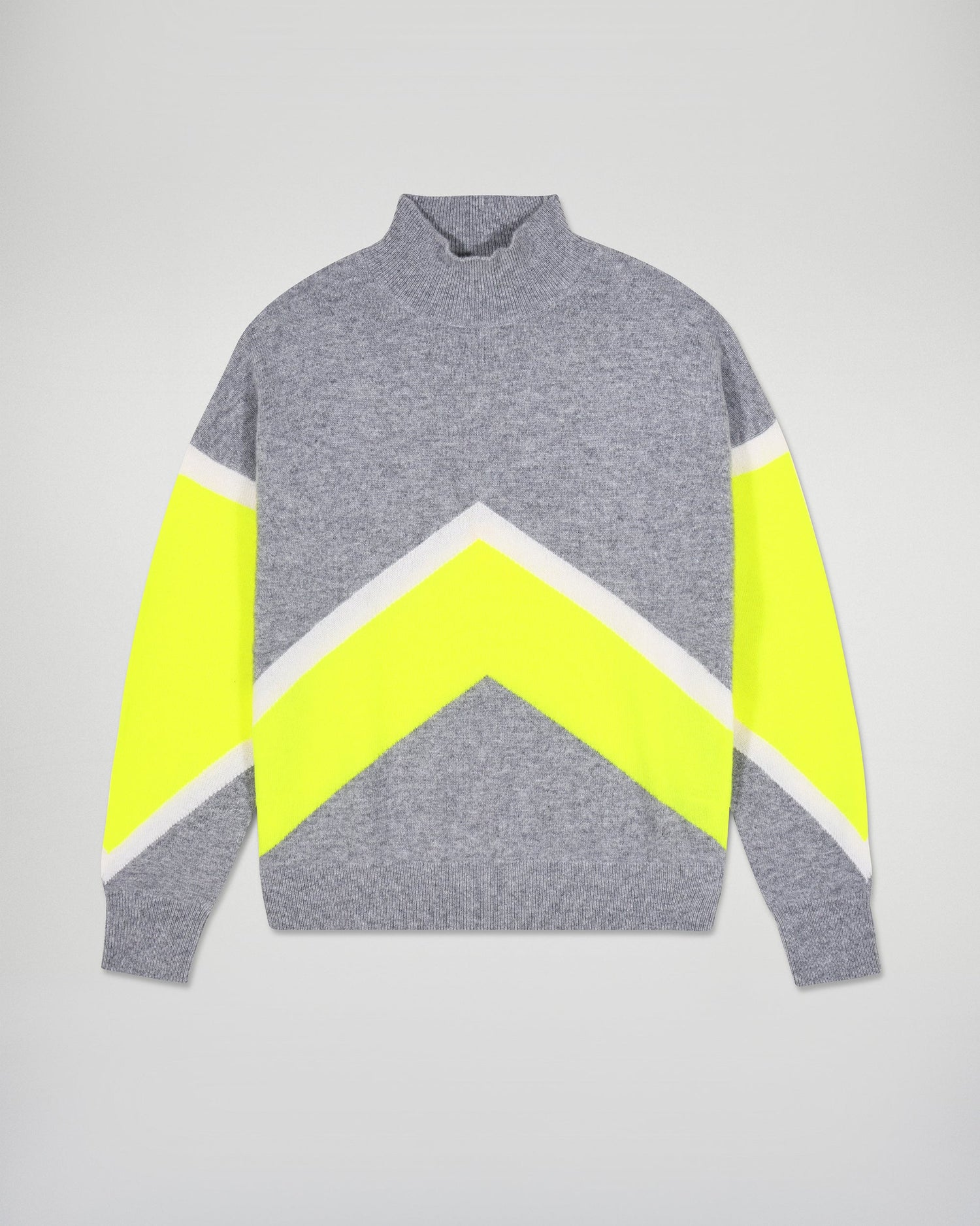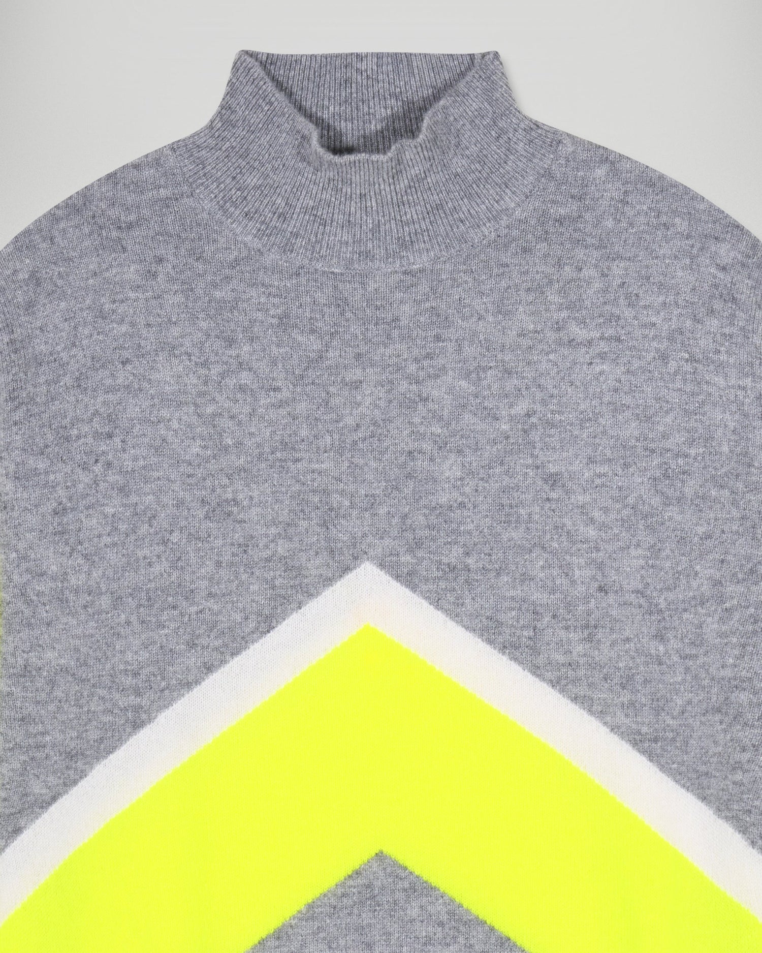 Sweater Color Block Mock Neck Sweater - 100% Cashmere - GCS Verified  - Dark Heather Gray