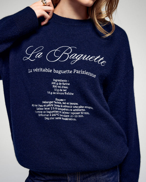 Crewneck Sweater La Baguette - 100% Cashmere - GCS Verified - Navy