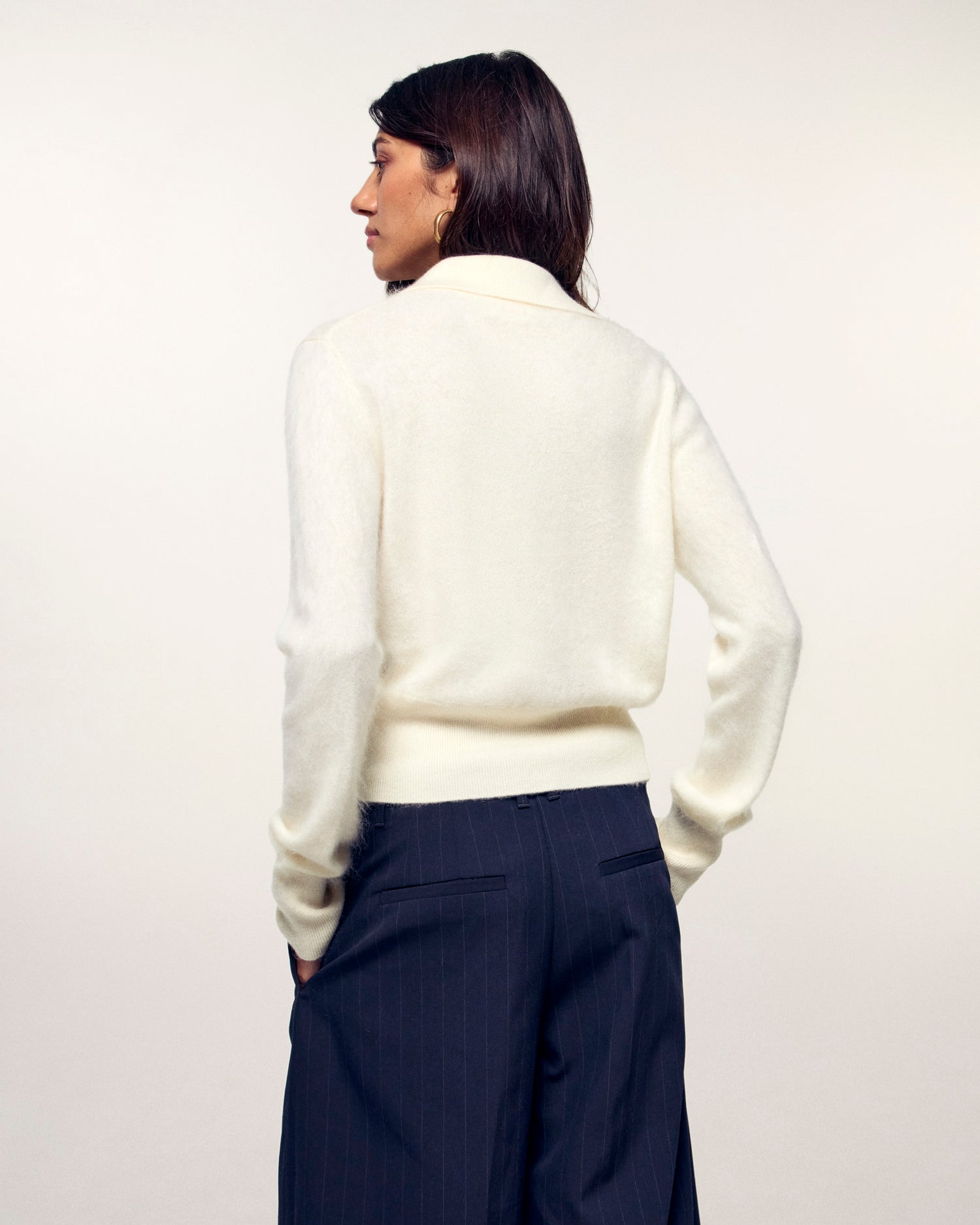 - Cardigan in 100% GCS-certified 2-ply brushed cashmere
