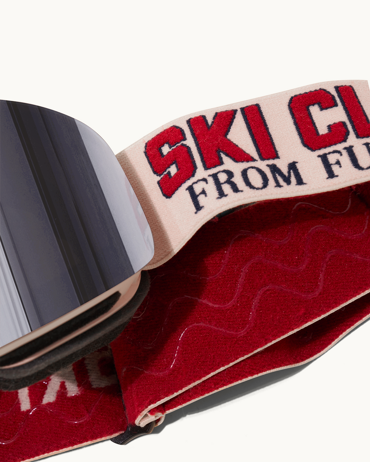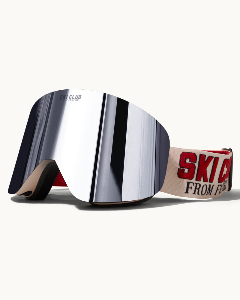 Stand out on the slopes with our "SKI CLUB" ski goggles. Featuring thick foam, they adjust easily to your head thanks to a non-slip, adjustable strap. The lens provides 100% UV protection, while its mirrored coating reduces glare.