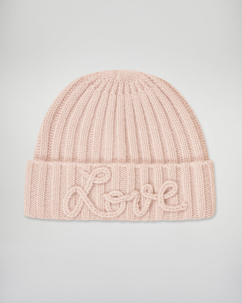 "Love" Cuffed Beanie - 100% Cashmere - GCS Verified  - Sand