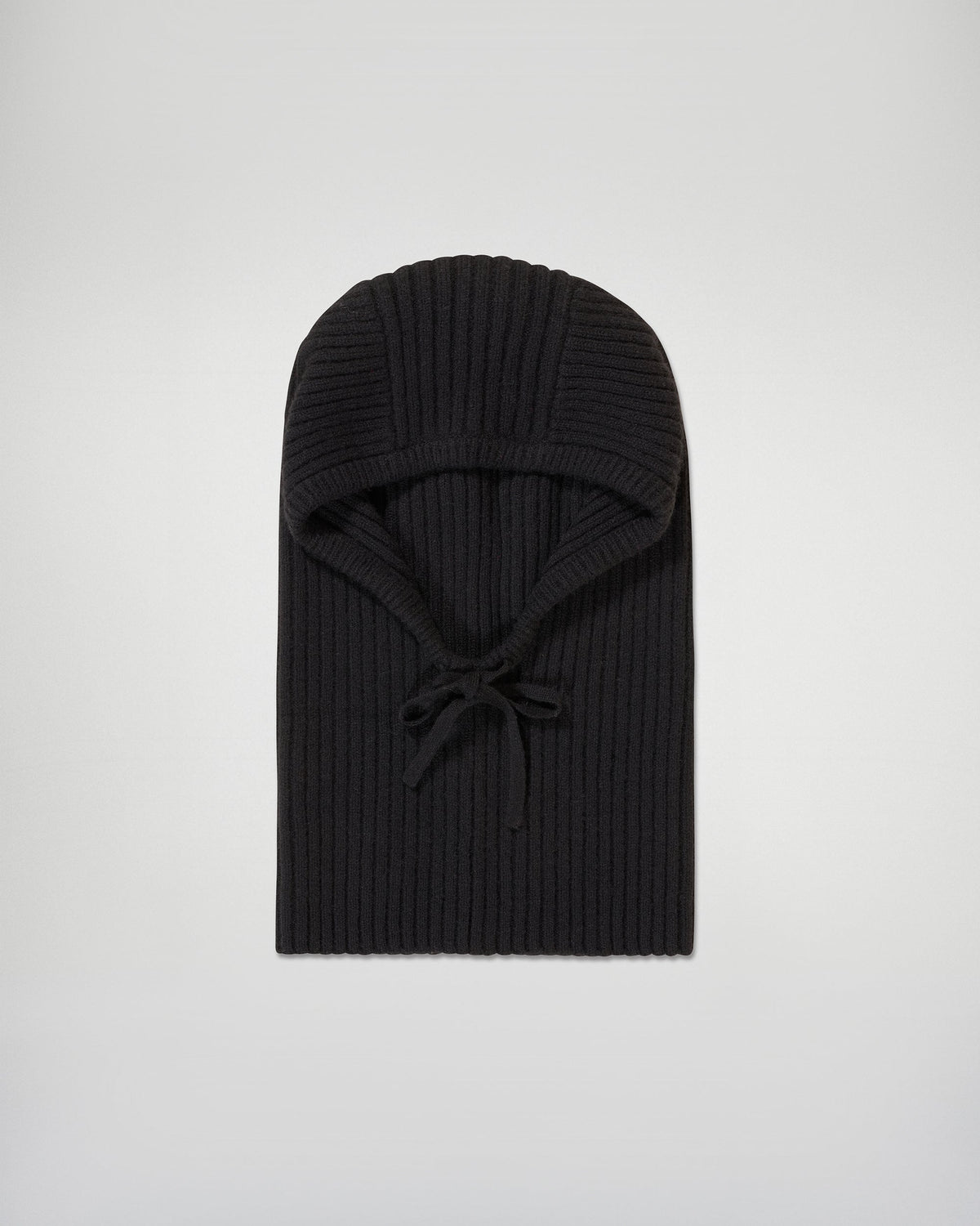 Stay warm and chic with this cozy cashmere hood. The ribbed knit and adjustable drawstrings make it a versatile piece for any winter outfit.