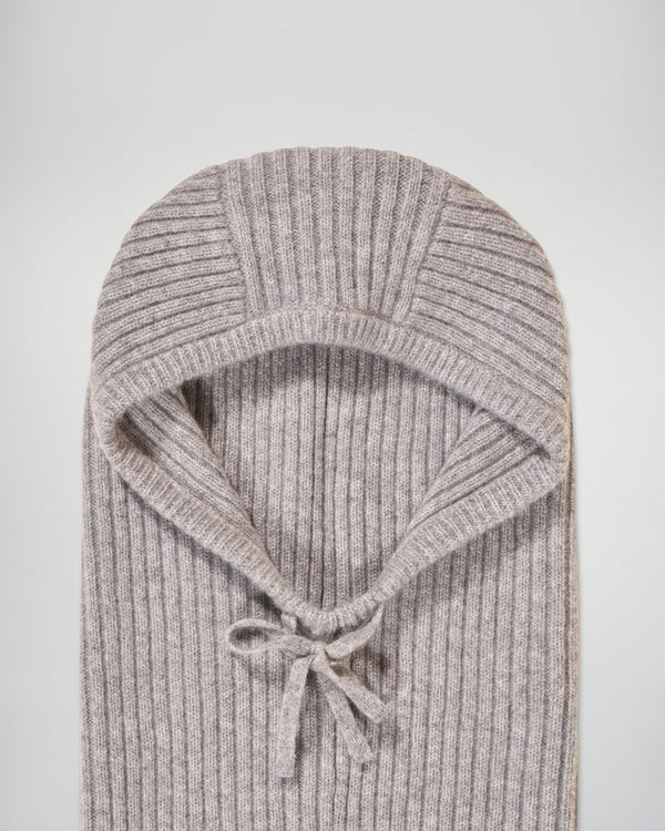 Stay warm and chic with this cozy cashmere hood. The ribbed knit and adjustable drawstrings make it a versatile piece for any winter outfit.