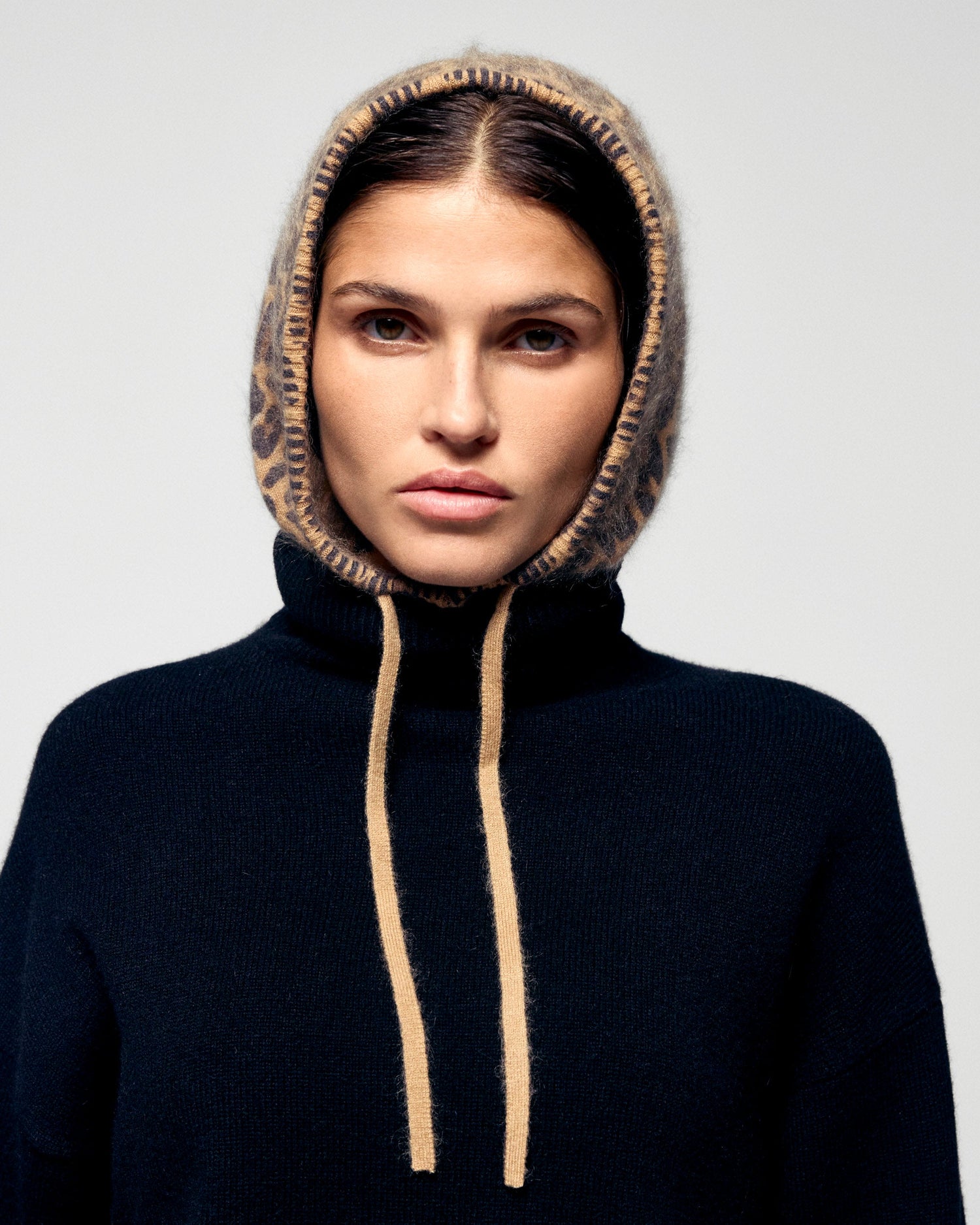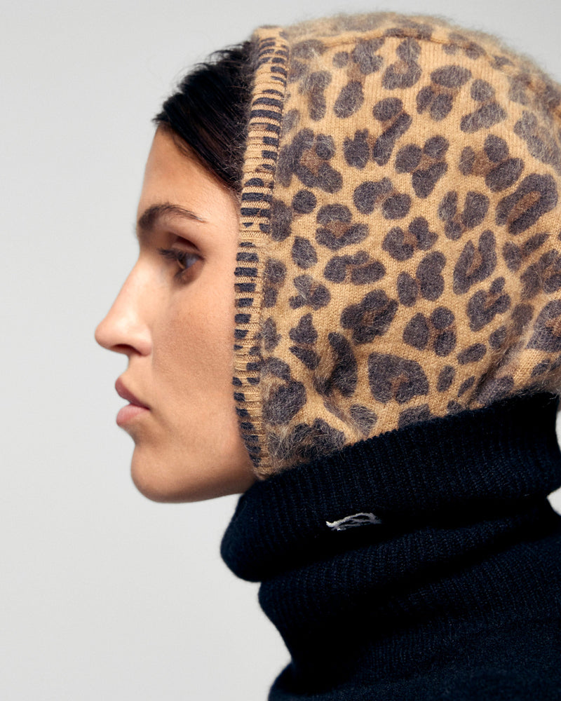 Regular Leopard Print Brushed Cashmere Balaclava - 100% Cashmere - GCS Verified  - Leopard