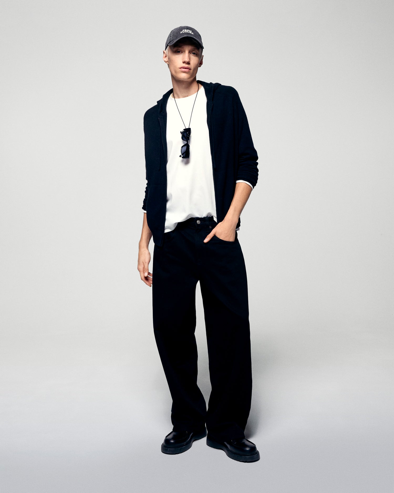 - Hood with drawstrings