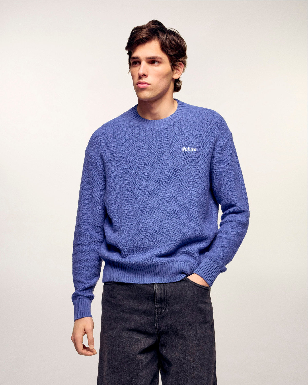This crewneck sweater revisits essentials with a detailed texture and optimal comfort. Crafted from a soft blend of cotton and cashmere, it stands out with a plain knit play that gives it a subtle and modern relief. Its oversize fit features our "Future" signature delicately embroidered on the chest, for a look that is both relaxed and polished.