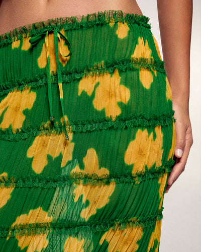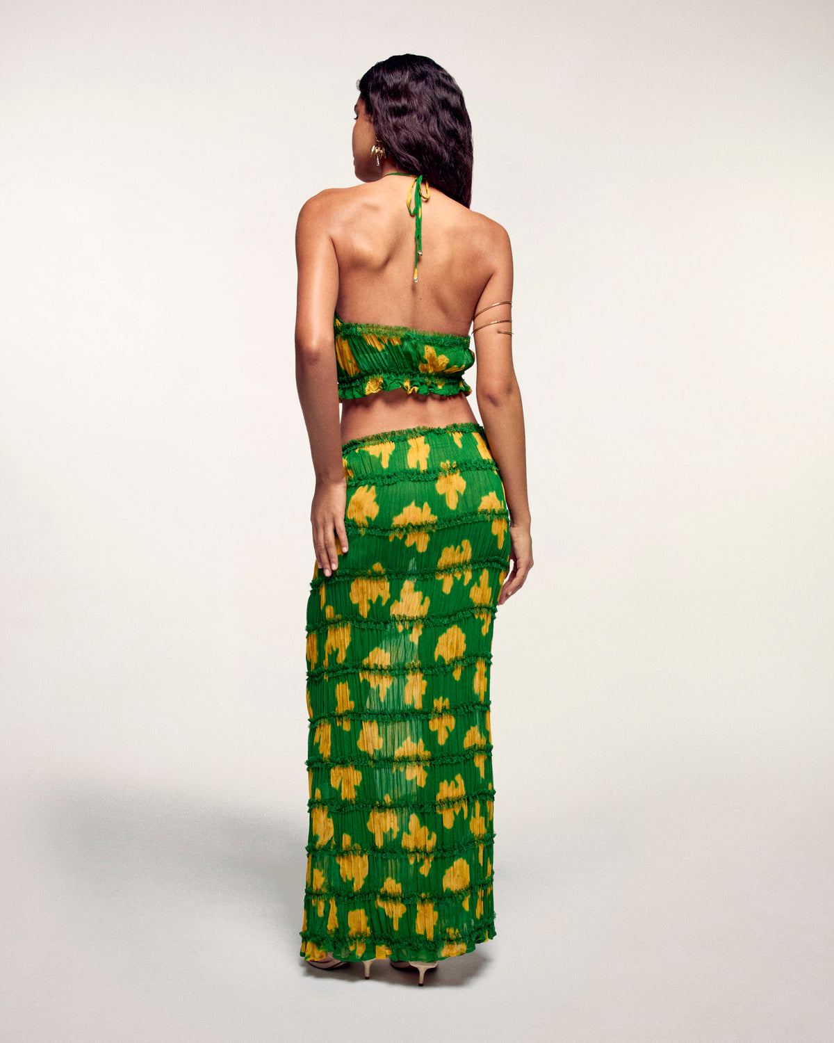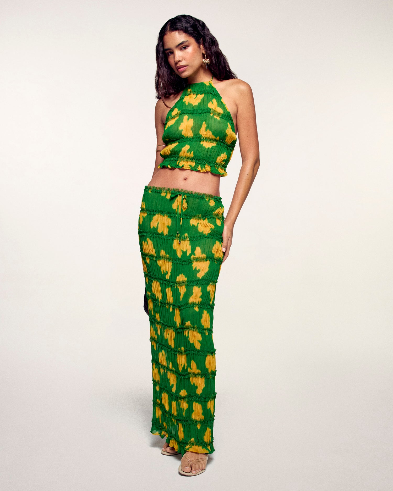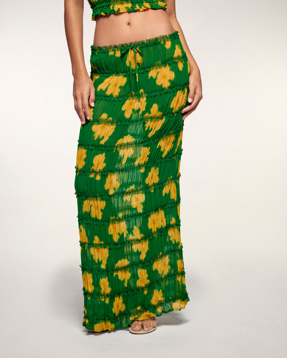 A must-have of our Brazil-themed summer collection, this mid-length skirt is crafted from light viscose chiffon. It features a fluid regular fit with an all-over smocked design, ideal for a summer silhouette.