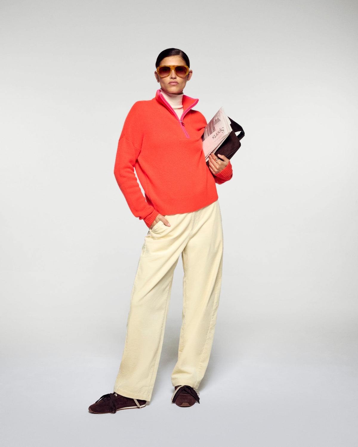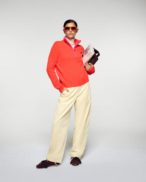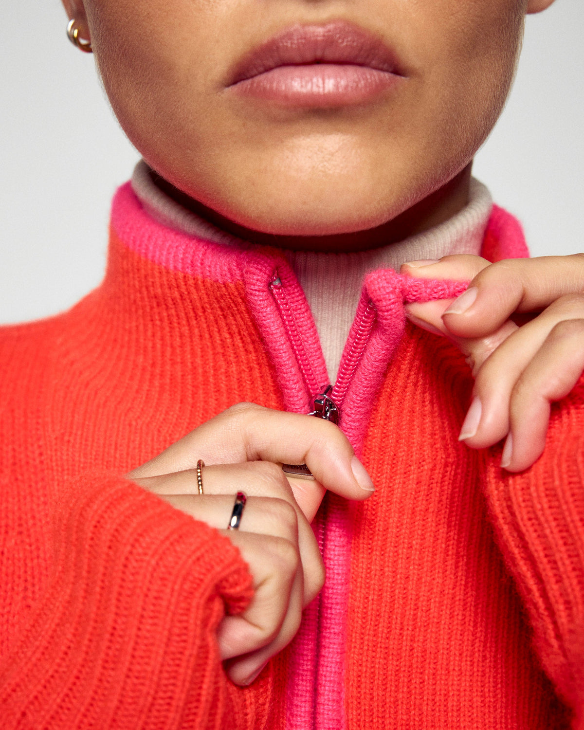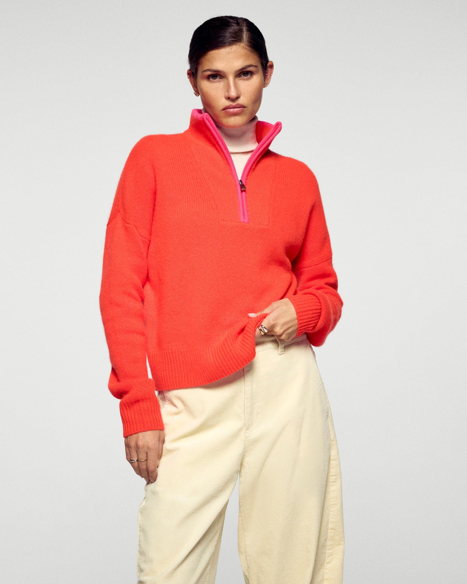 Zip Neck Sweater with Contrast Trims - 100% Cashmere - GCS Verified - Cosmic Orange