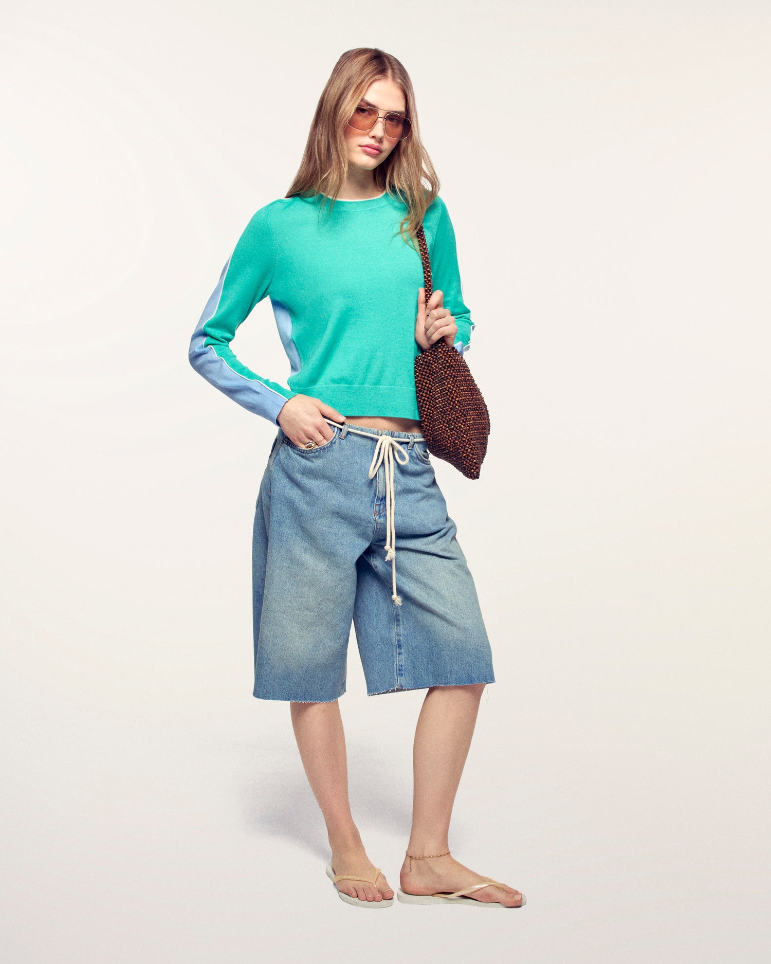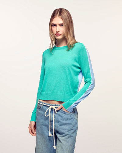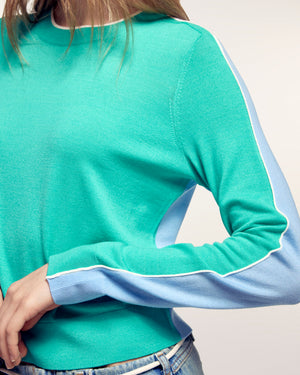 Tricolor Crewneck Sweater - 100% Merino Wool - RWS Certified - Aqua Love