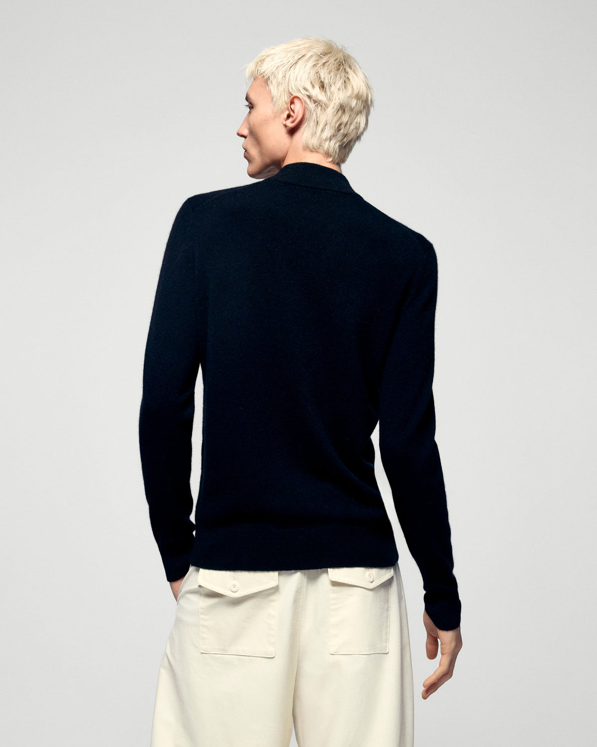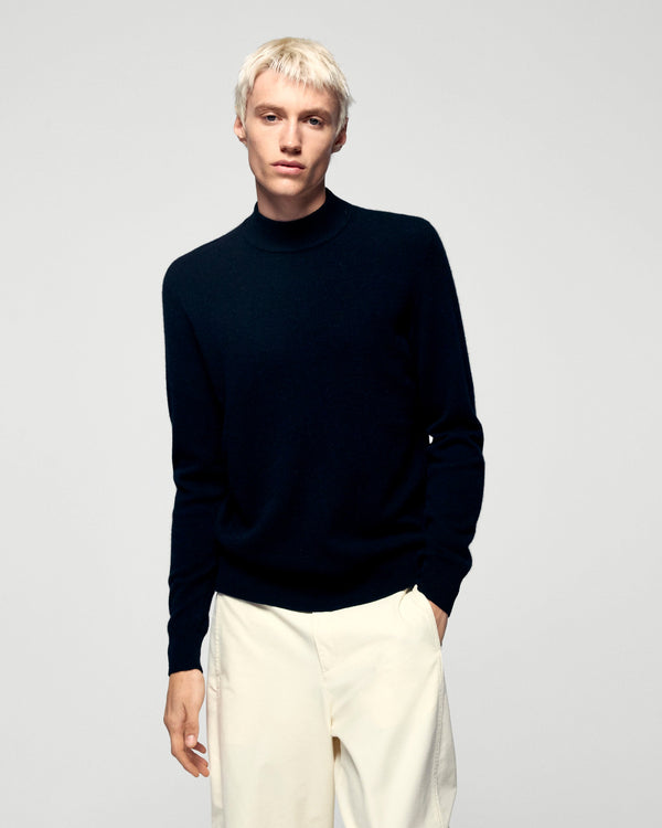 Crafted from 2-ply cashmere, this sweater offers a lightweight and soft knit. The mock neck and long sleeves exude timeless elegance, making it a versatile wardrobe piece. Pair it with tailored trousers and a blazer for a sophisticated ensemble.