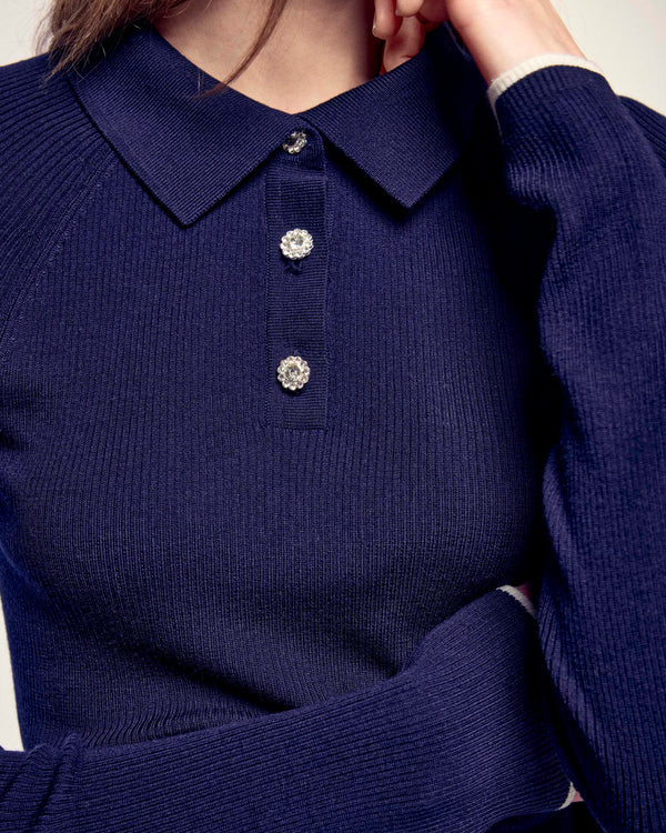 Novelty Button Polo Sweater - 100% Merino Wool - RWS Certified - Navy