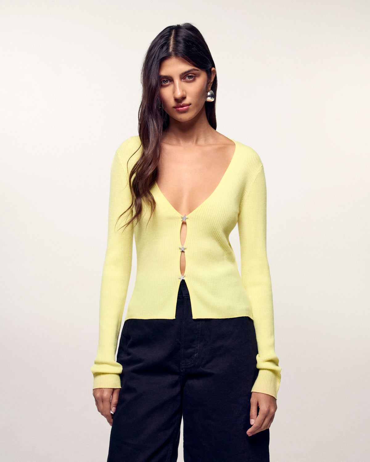 V-neck Top with Star Buttons - 100% Merino Wool - RWS Certified - Star Yellow