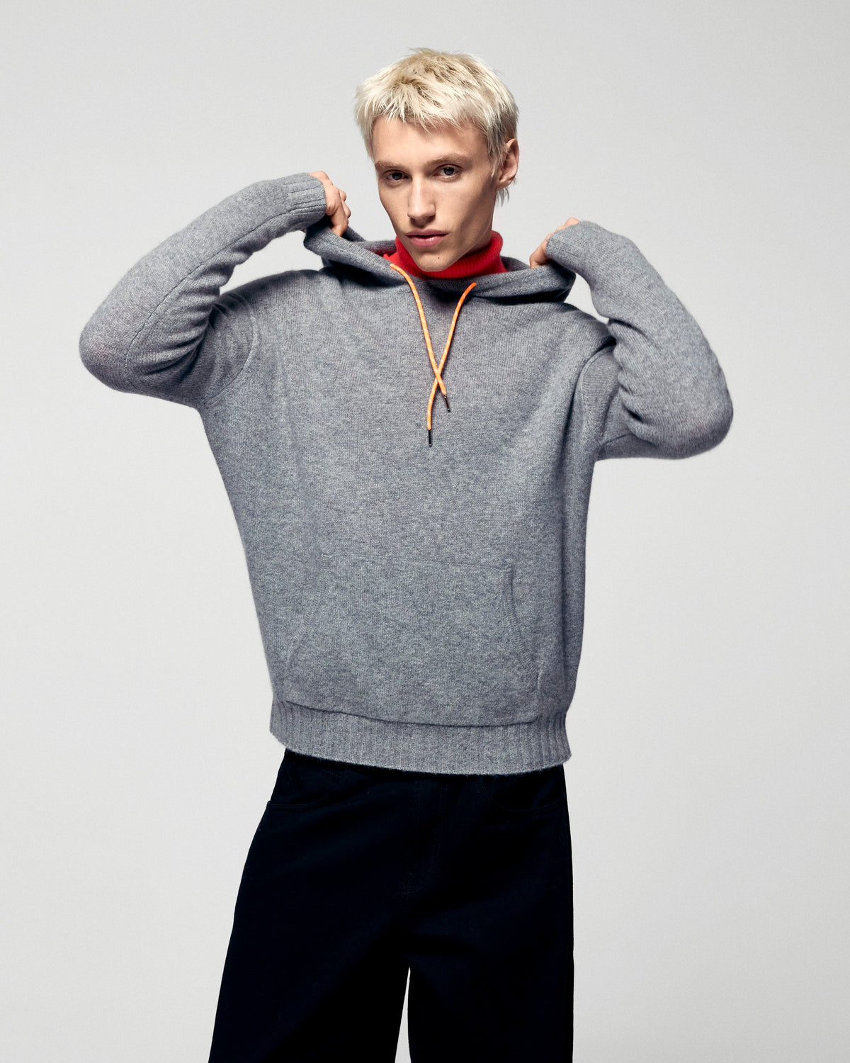 - Hood with contrasting drawstrings
