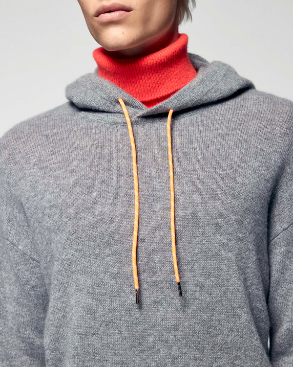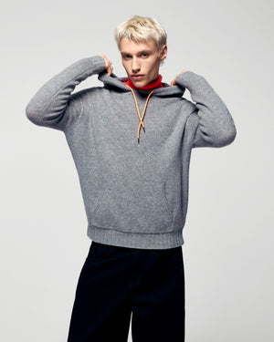 Contrasting Drawstring Hoodie - 100% Cashmere - GCS Verified  - Dark Heather Gray