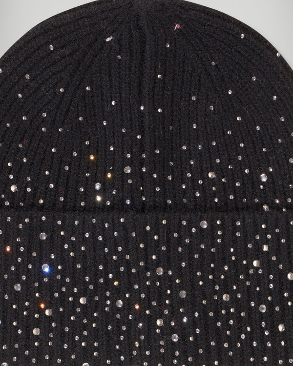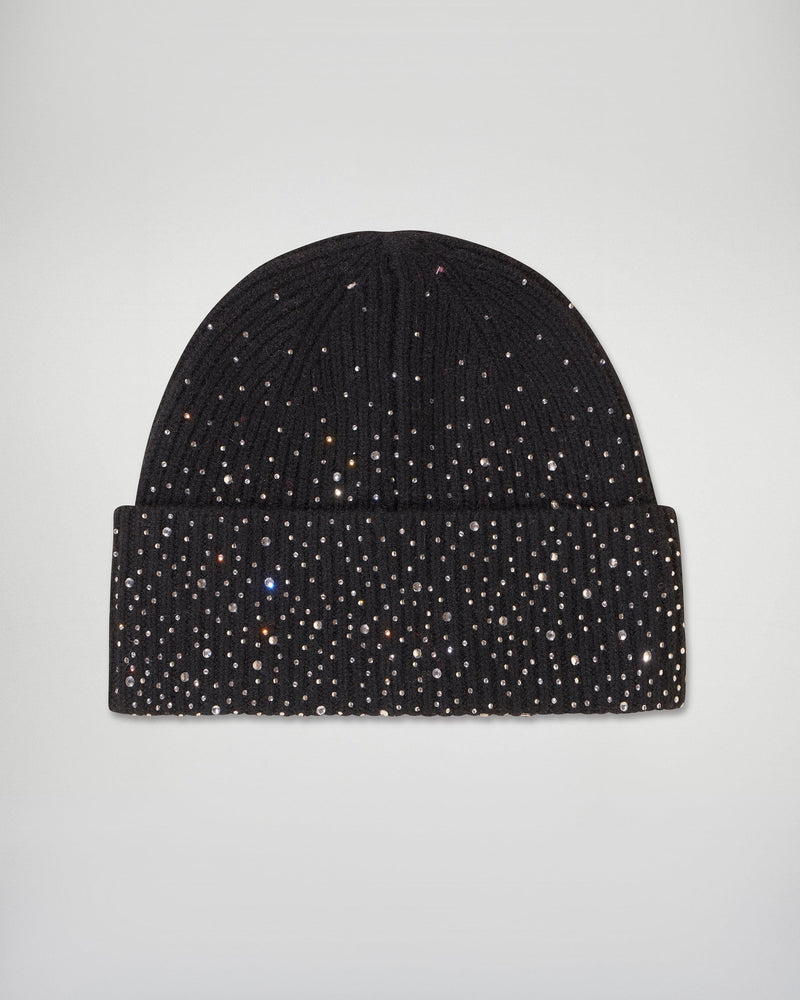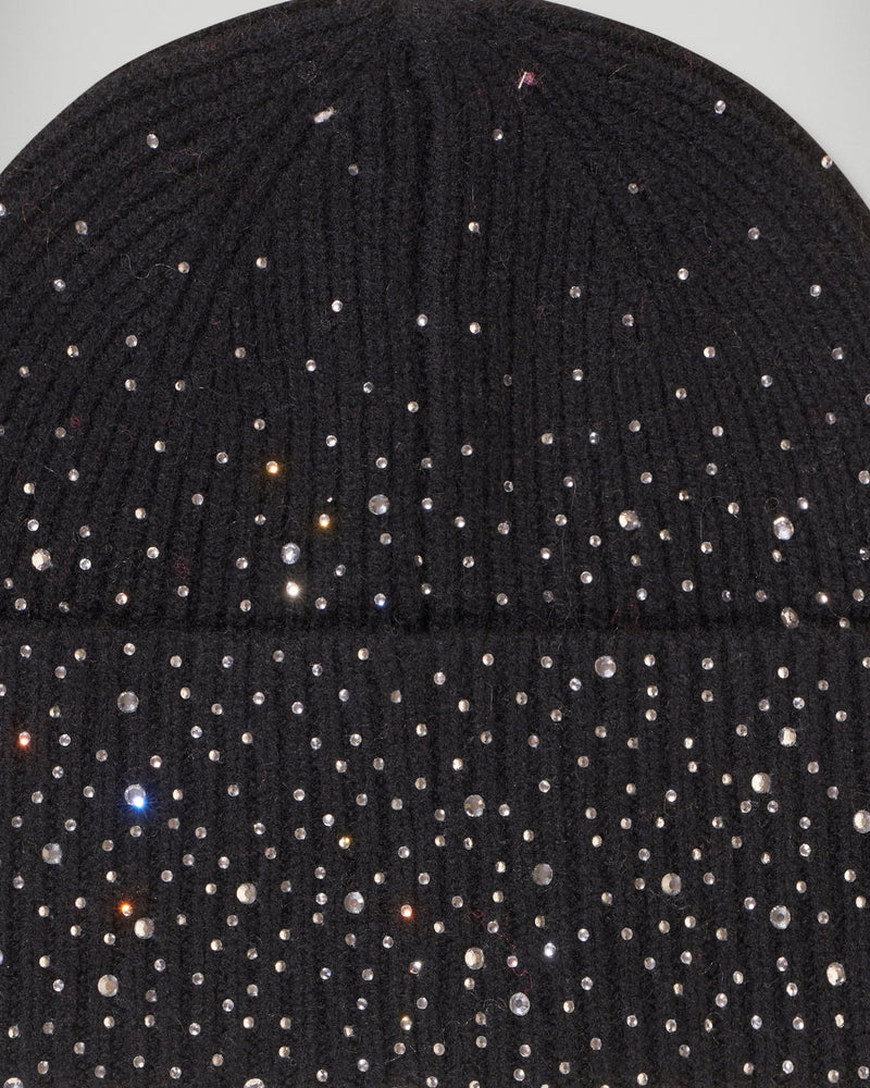 - Women's GCS® 6-ply certified ribbed cashmere beanie with rhinestones