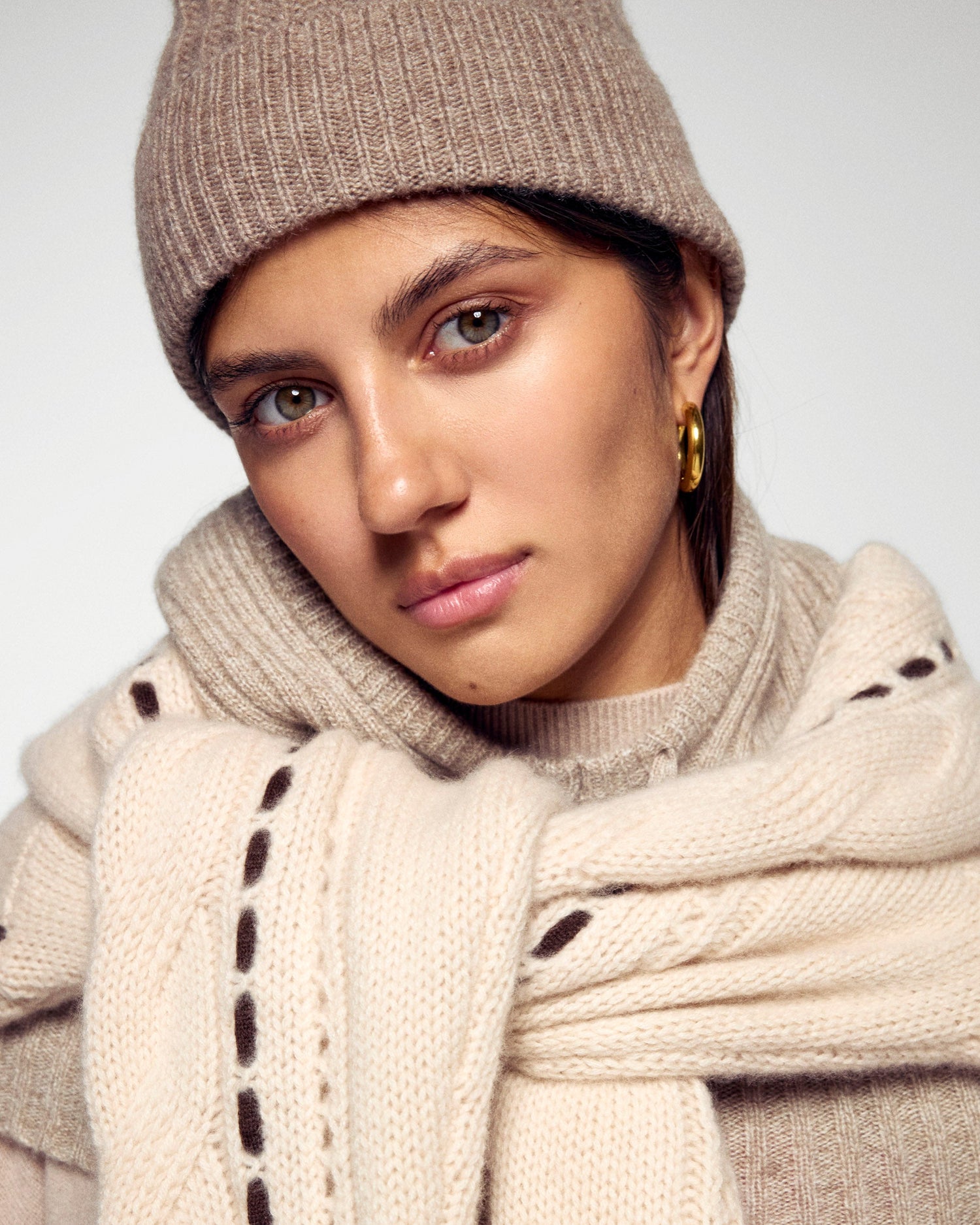 100% GCS-certified cashmere (Good Cashmere Standard). This standard guarantees a more sustainable cashmere, promoting animal welfare, improving farmers’ working conditions, and protecting the environment. Hand wash in cold water recommended. Maximum 20°C. Do not rub or wring. Dry flat, no machine spin. Iron at low temperature. Dry cleanable.
