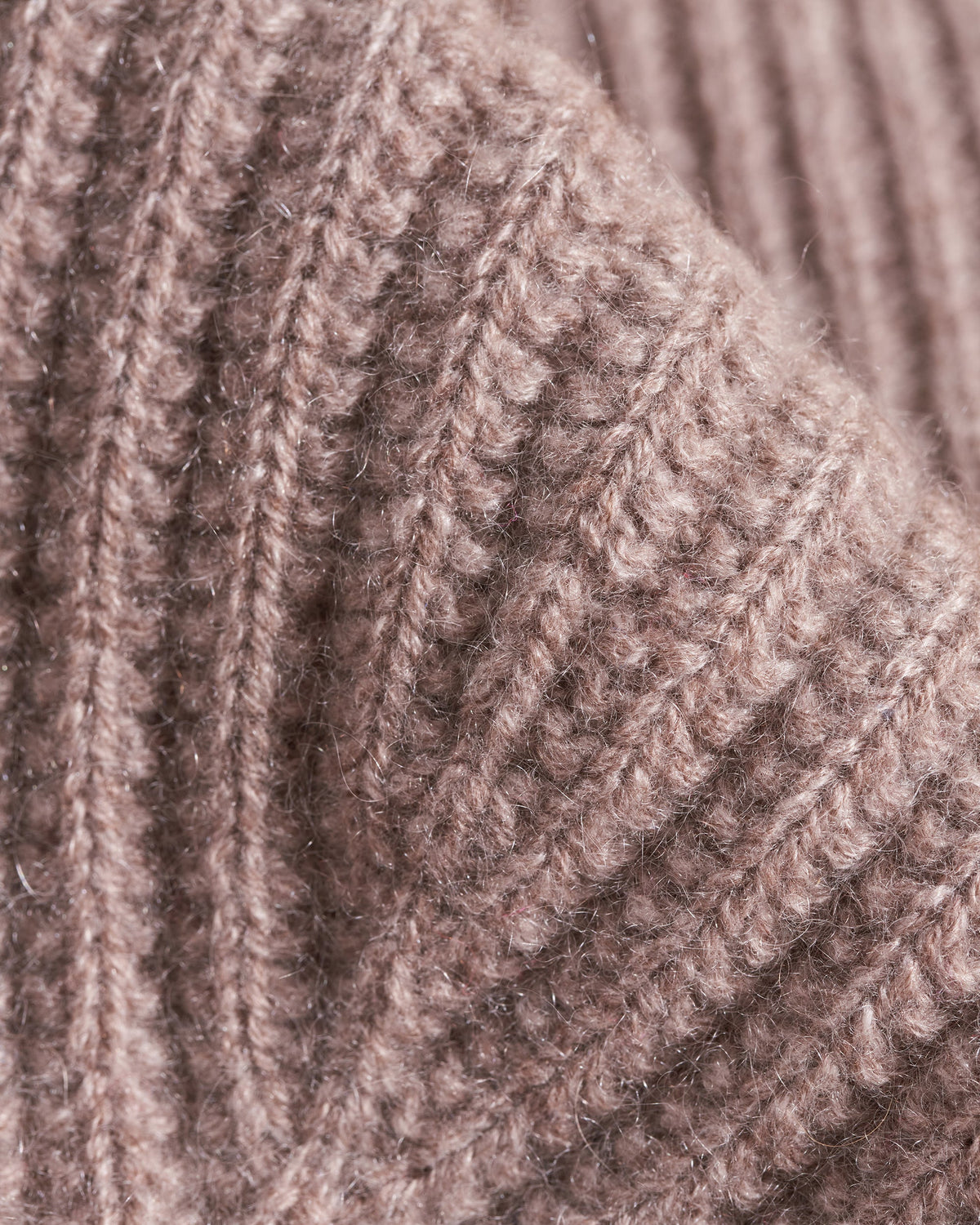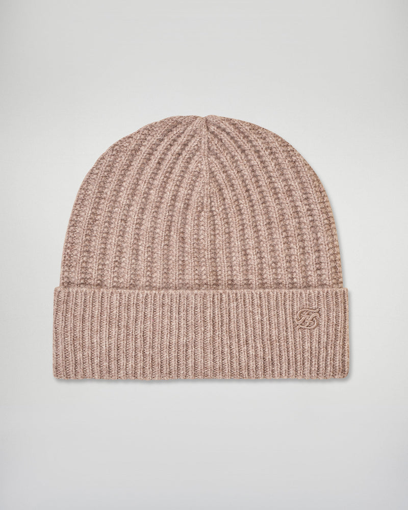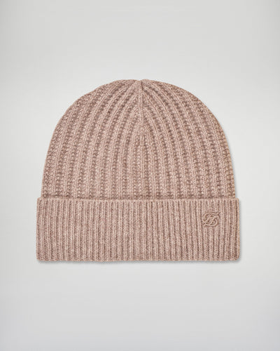 Ribbed Cuff Beanie - 100% Cashmere - GCS Verified - Taupe