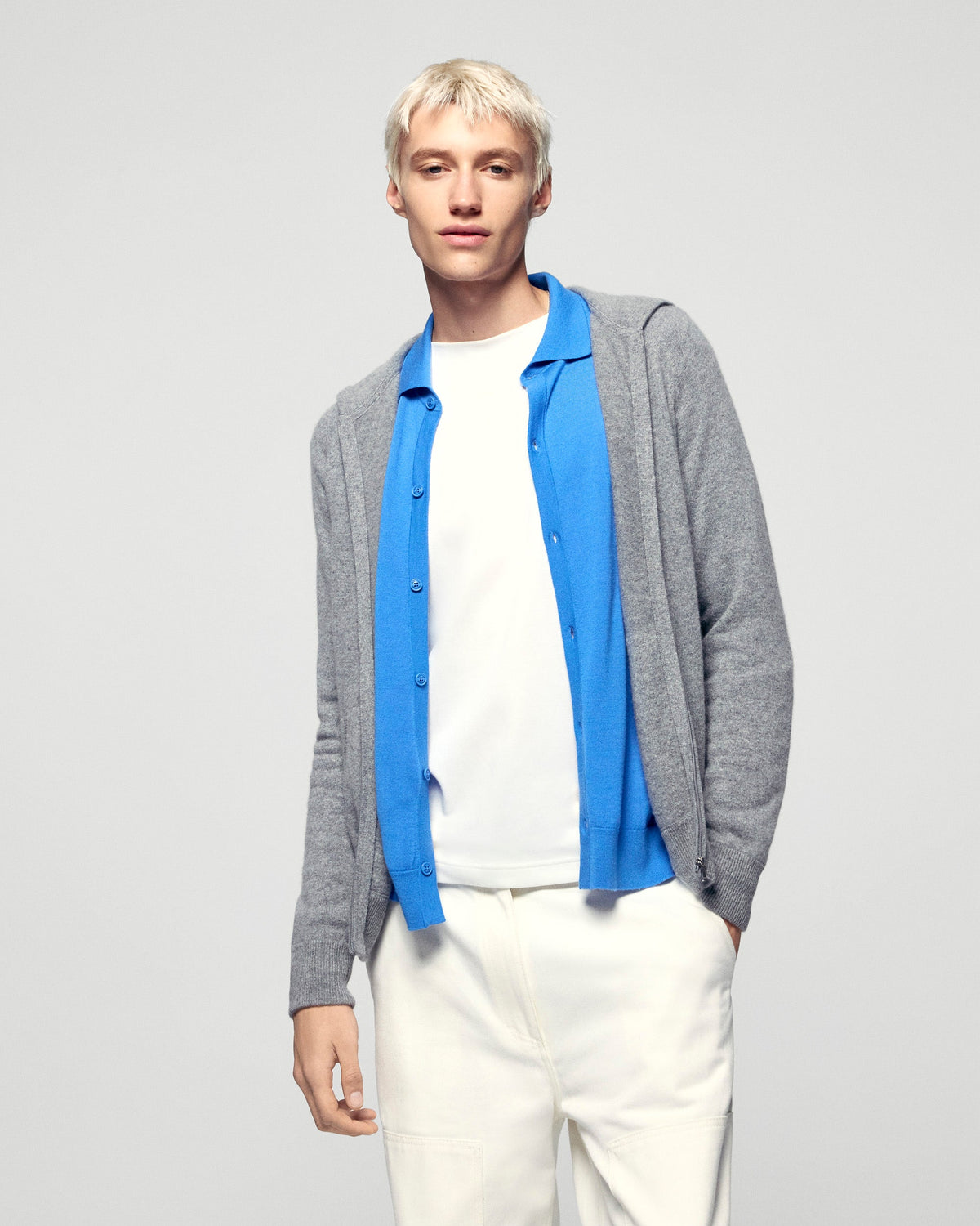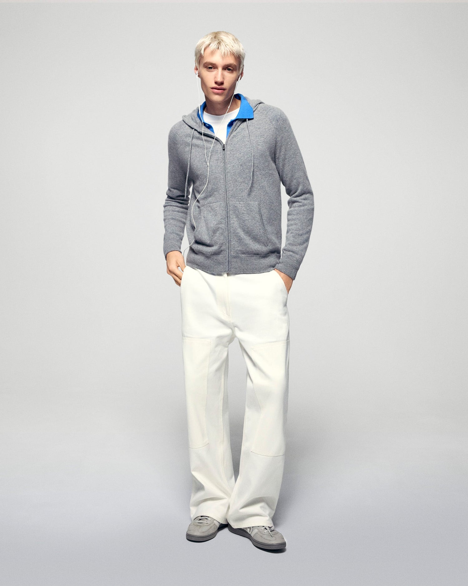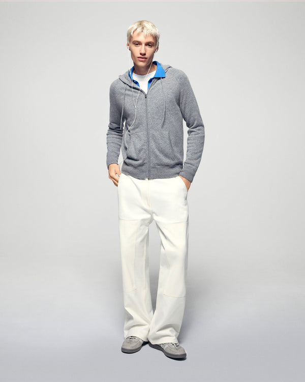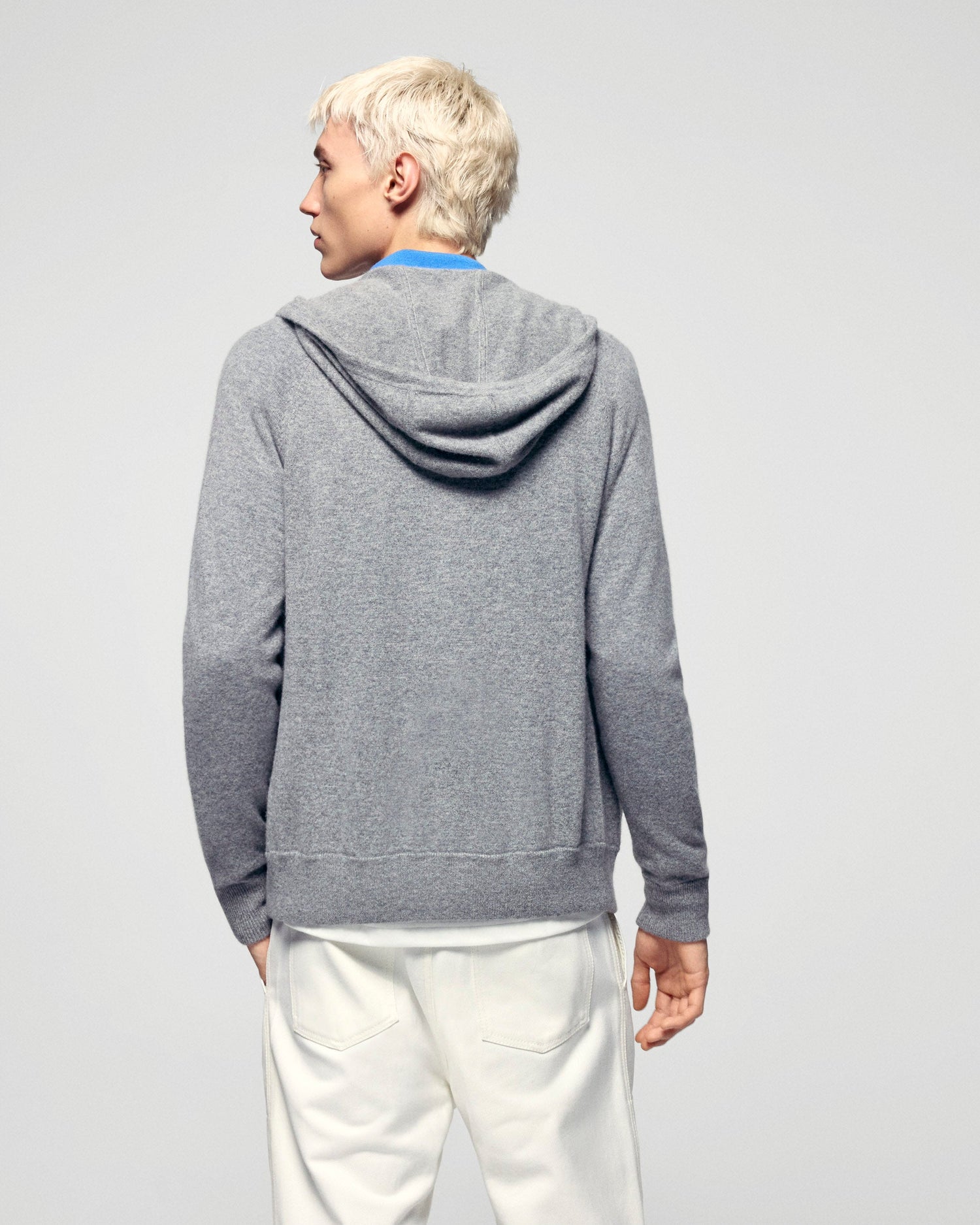 Crafted from 2-ply cashmere, this zipped hoodie sweater features long sleeves, a drawstring hood and a front pocket. Pair it with your favorite denim to create a perfect look.