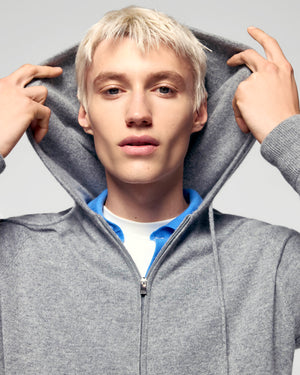 Zipped Closure Hoodie Sweater - 100% Cashmere - Dark Heather Gray