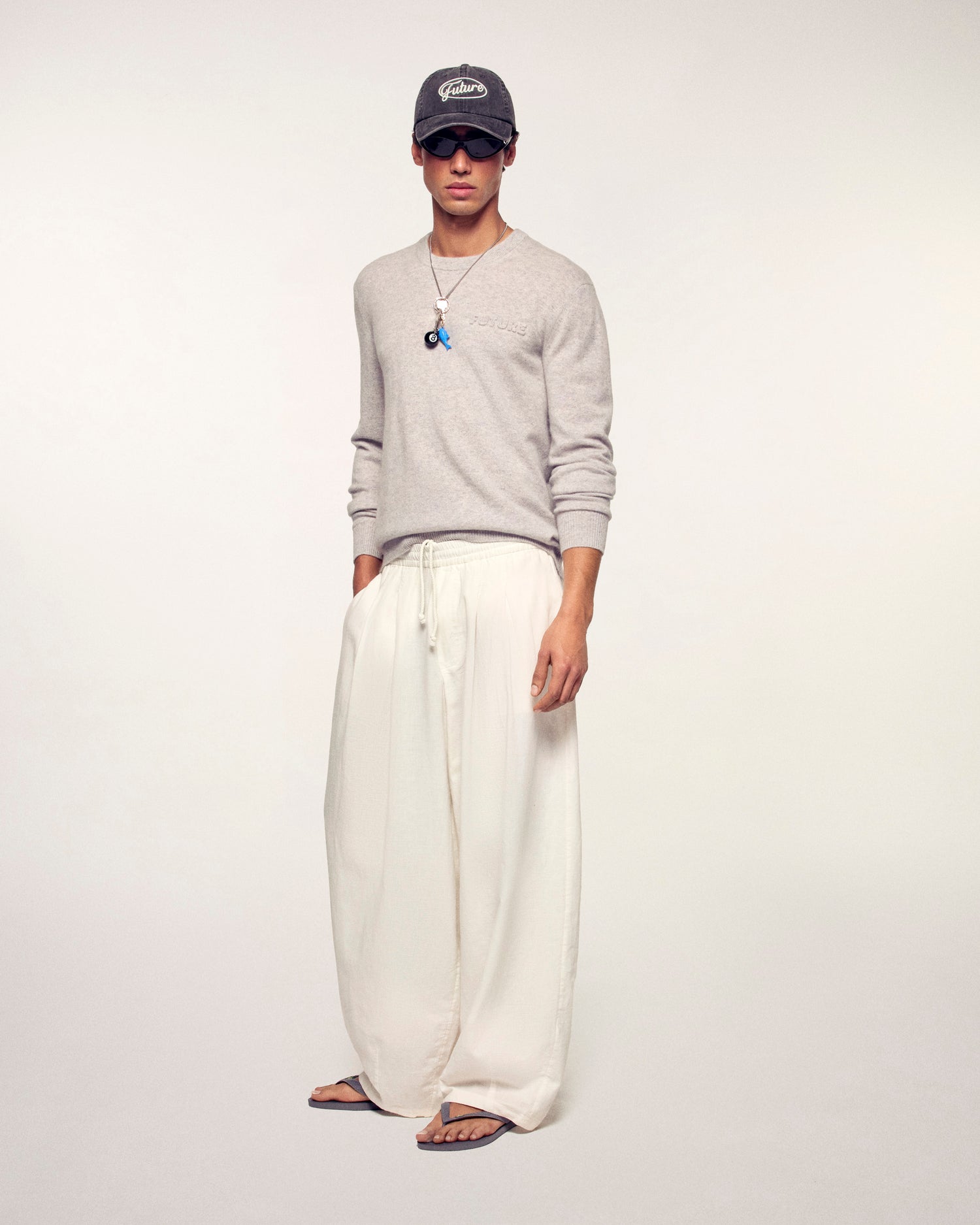 A modern piece distinguished by its textured workmanship and strong visual appeal. This cashmere sweater features a captivating “Future” 3D-effect print, adding a contemporary sense of depth to a classic menswear essential.