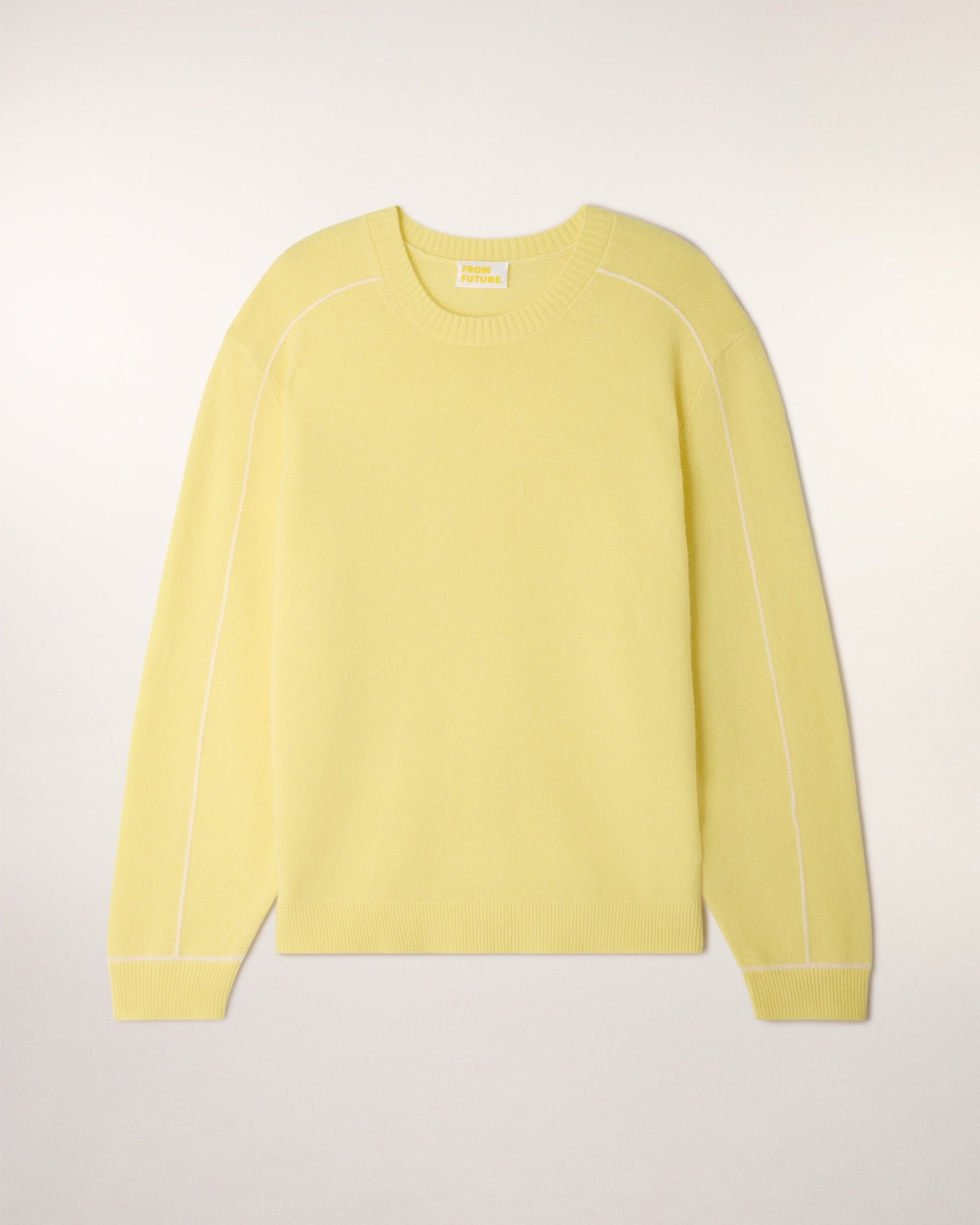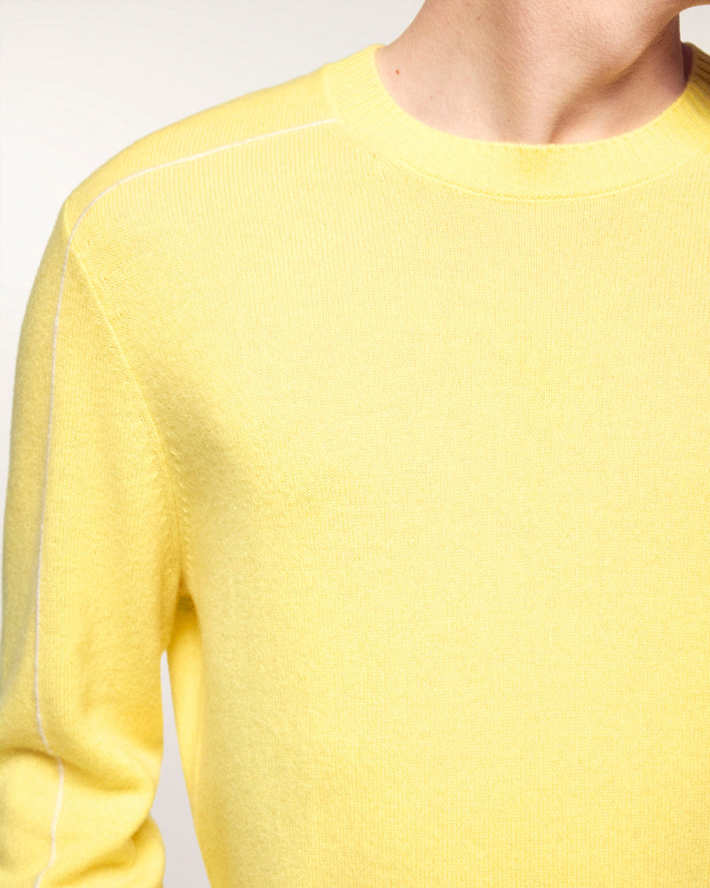 Contrasting Trim Crew Neck Sweater - 100% Cashmere - GCS Verified - Star Yellow