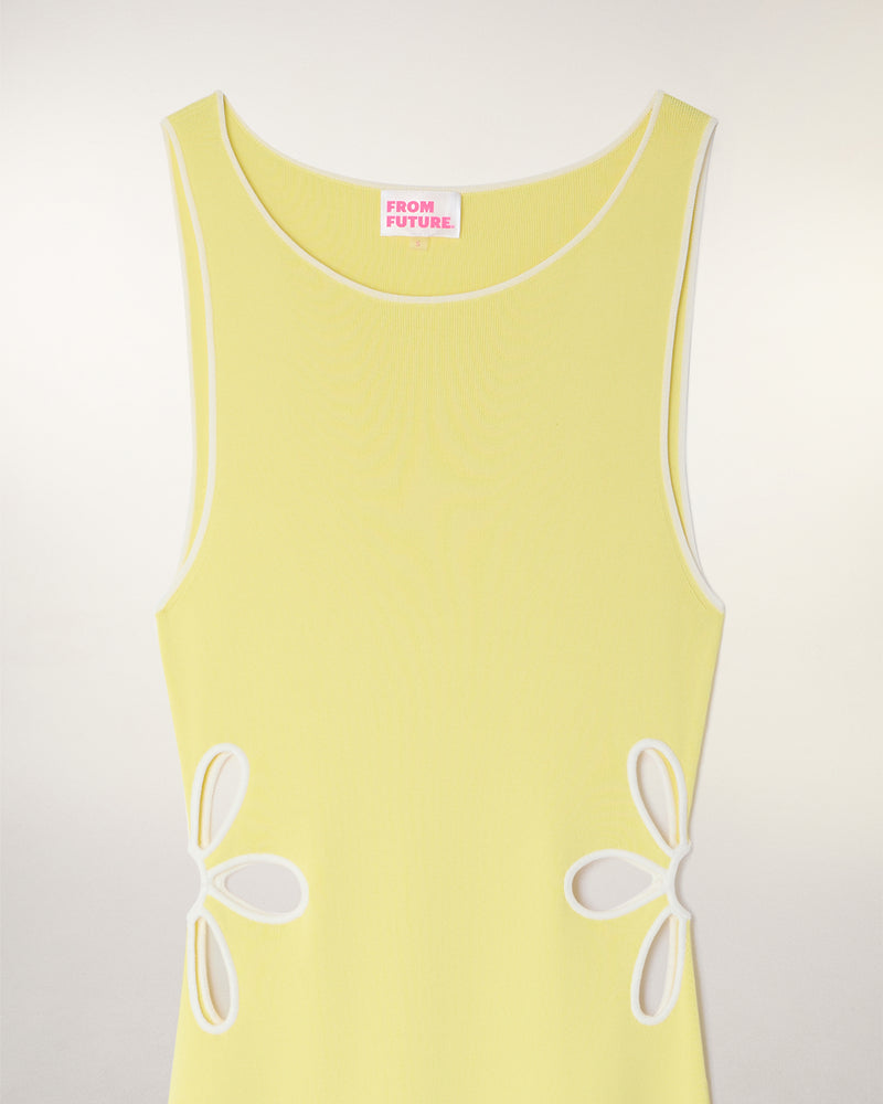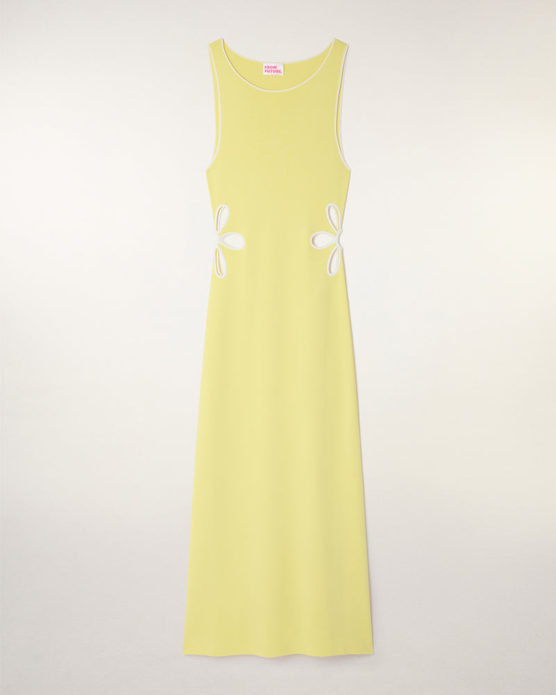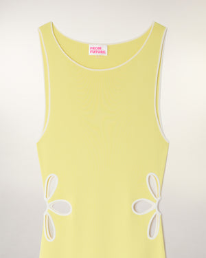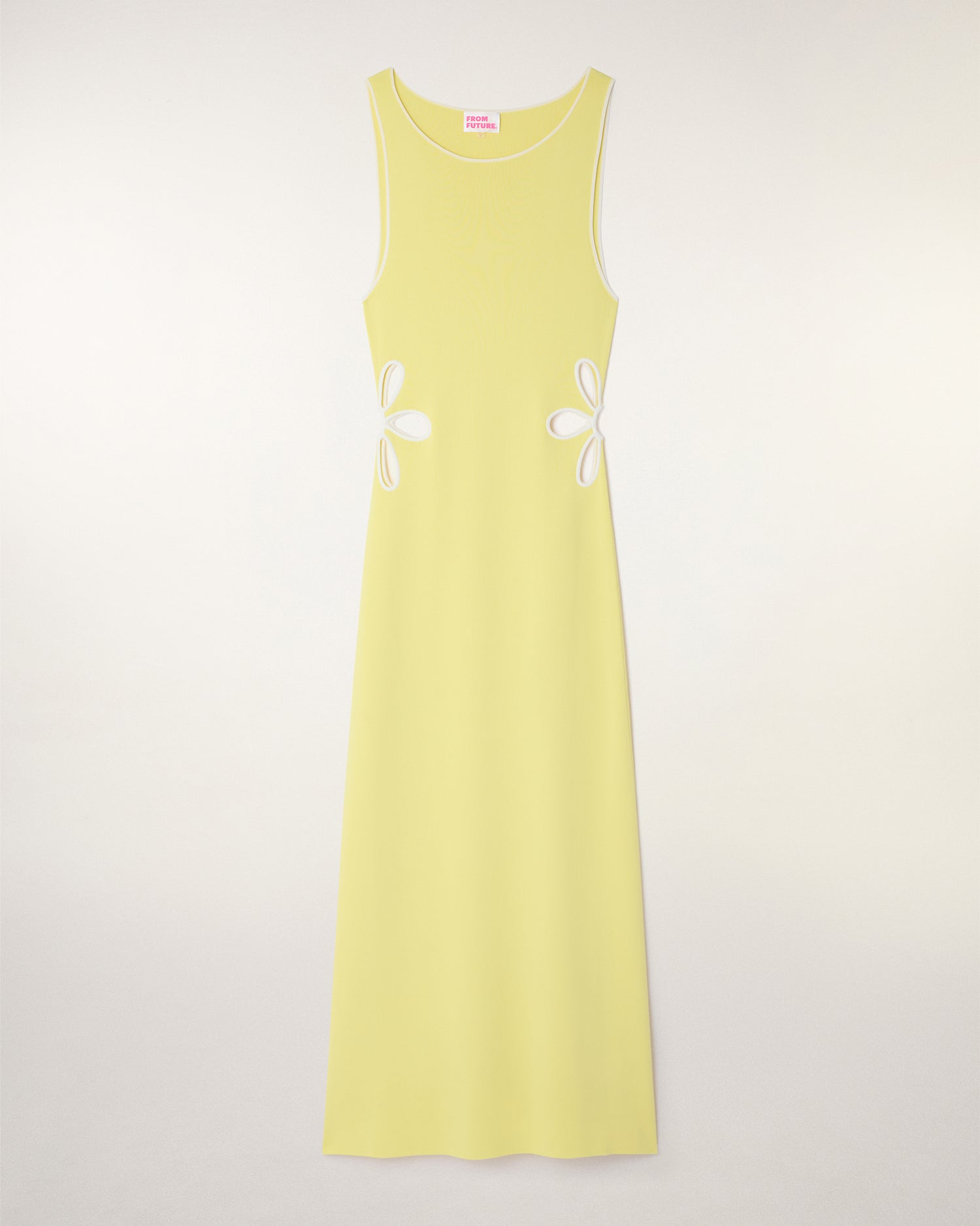 Long Strappy Dress with Flower Cut-outs - Viscose Nylon - Sky Yellow