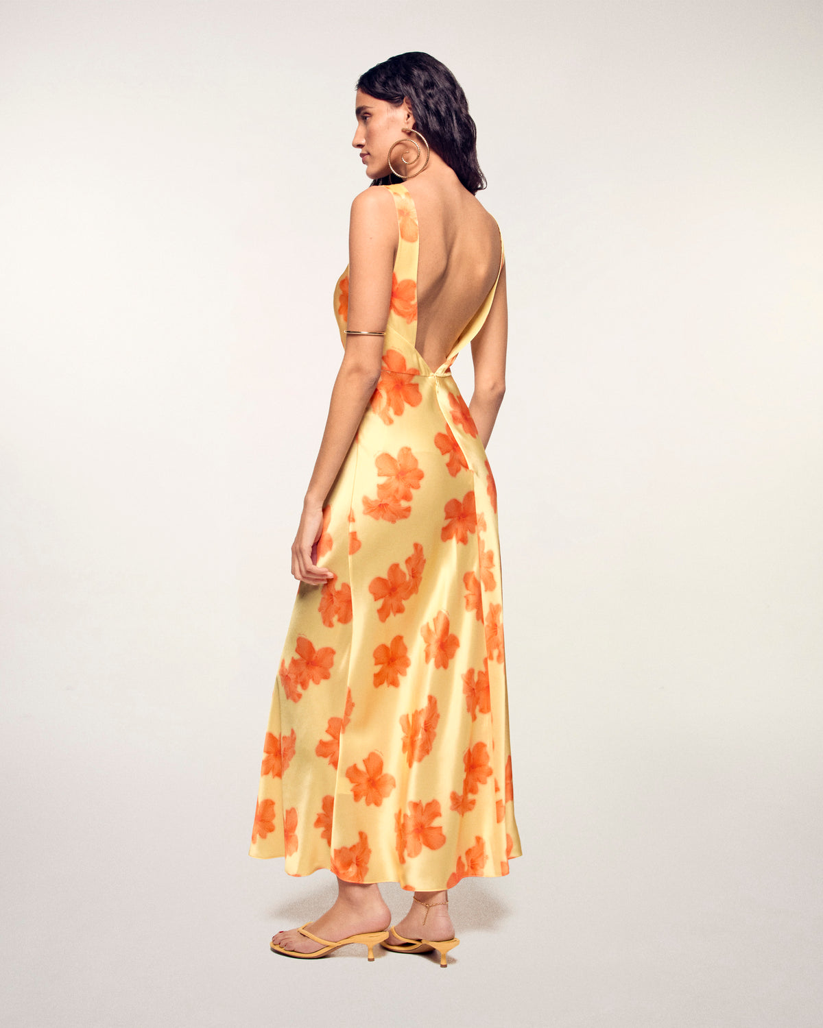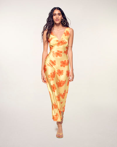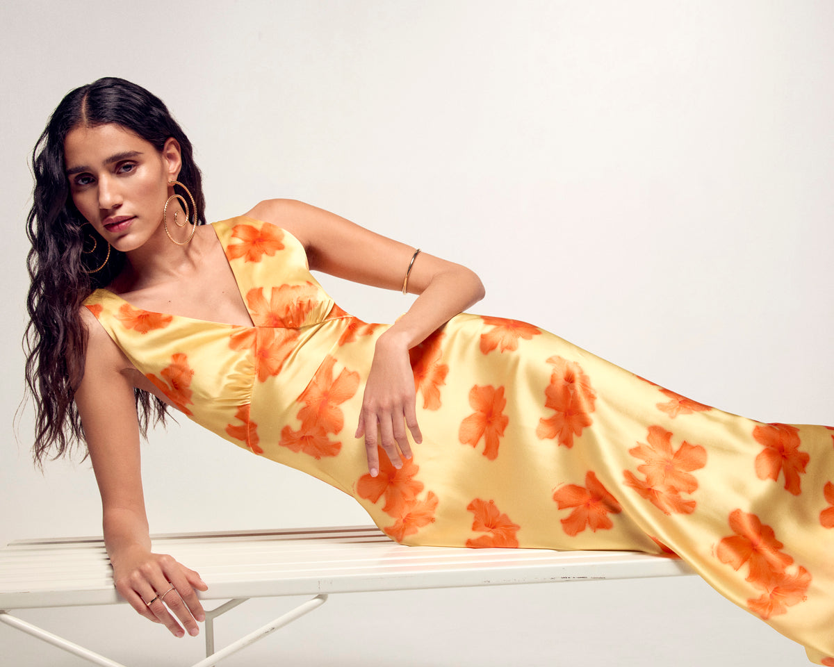 Backless Long Dress - Silk - Sunny Hibiscus