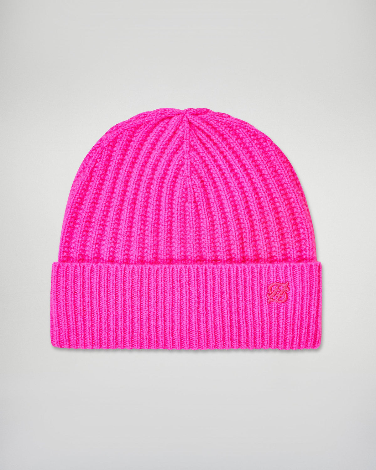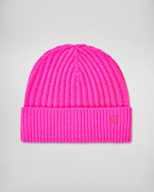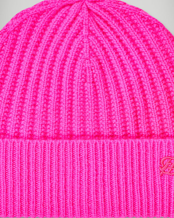 Ribbed Cuff Beanie - 100% Cashmere - GCS Verified - Cosmic Pink