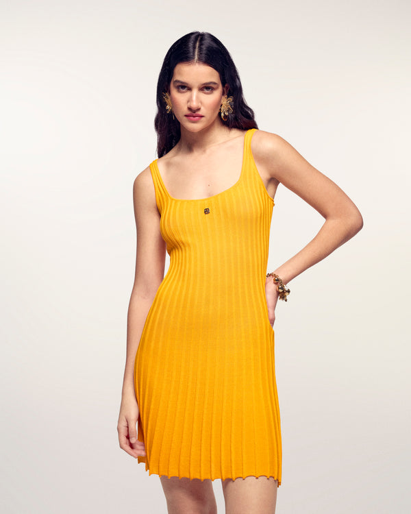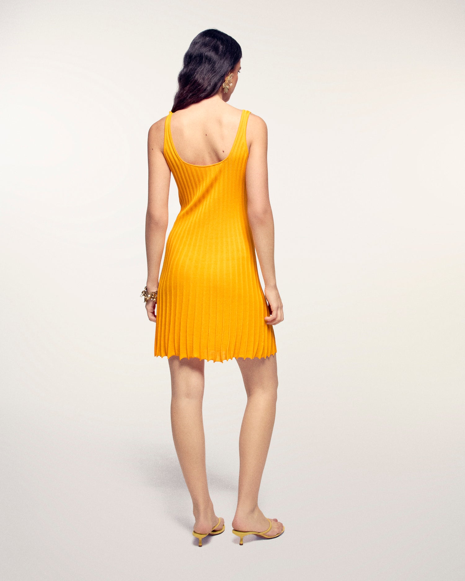 Short Strappy Dress with "FF" Metal Plate - Viscose Nylon - Tangerine
