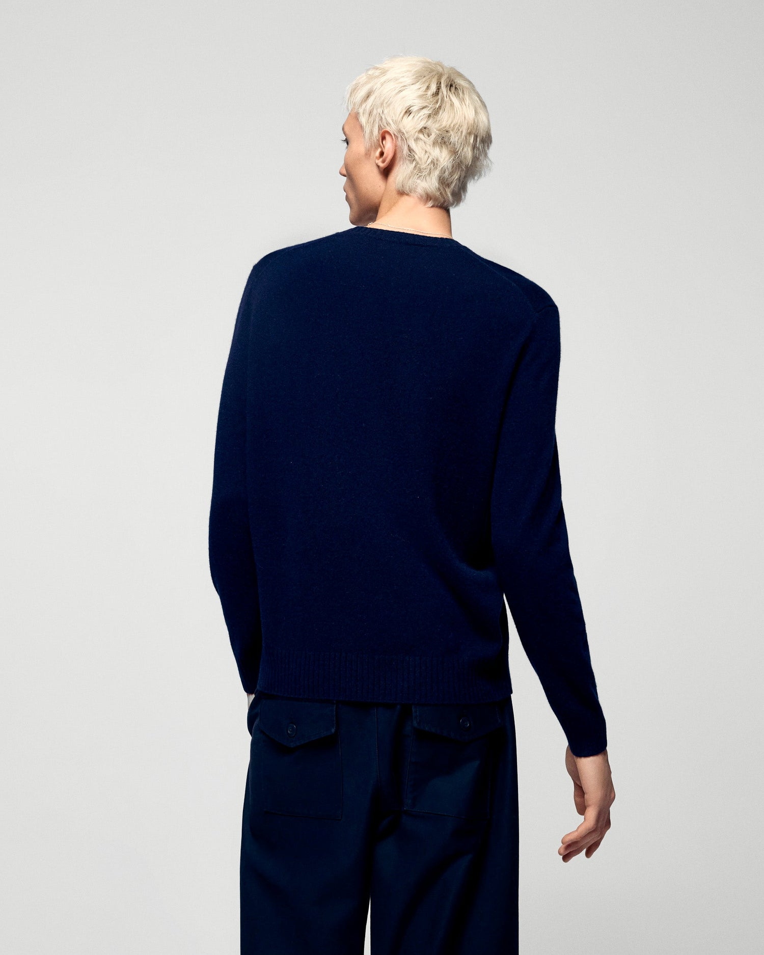 Crew Neck Sweater Discovering the Mountains - 100% Cashmere - GCS Verified  - Navy